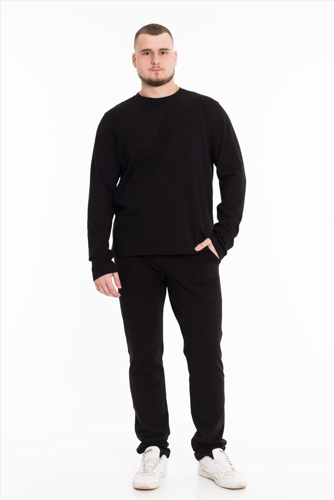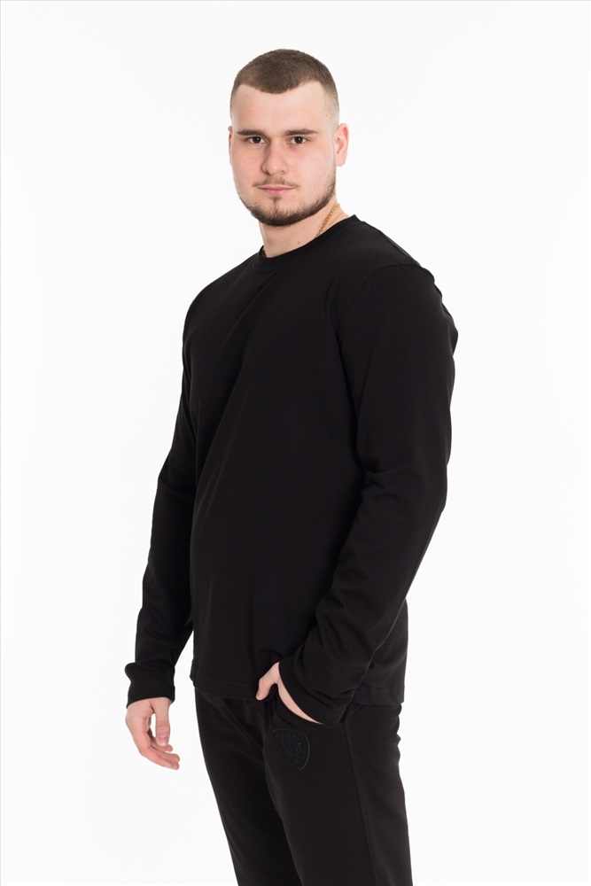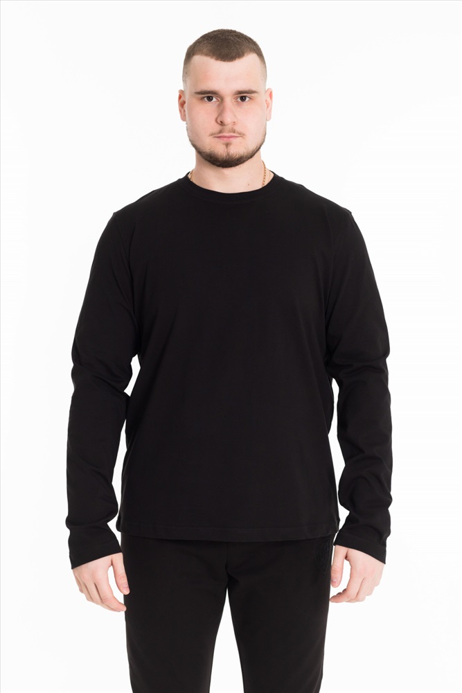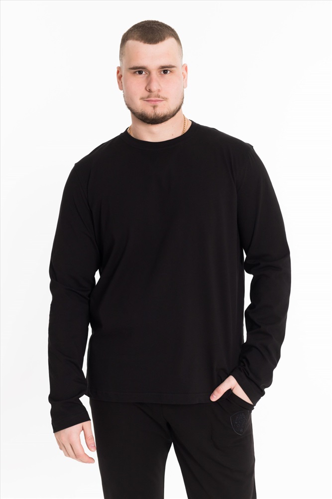 Застежка: Без застежки С капюшоном: Нет С карманами: Нет Сезон: Всесезонный Силуэт: Прямой Состав: Хлопок 100% Цвет Номенклатуры: черный Лонгслив мужской выполнен из однотонной кулирки. Модель с длинными рукавами и круглым вырезом горловины, оформленным планкой. Лонгслив-идеальная основа для любого образа, отлично сочетается с джинсами, брюками и другими предметами гардероба. Комментарии к товару