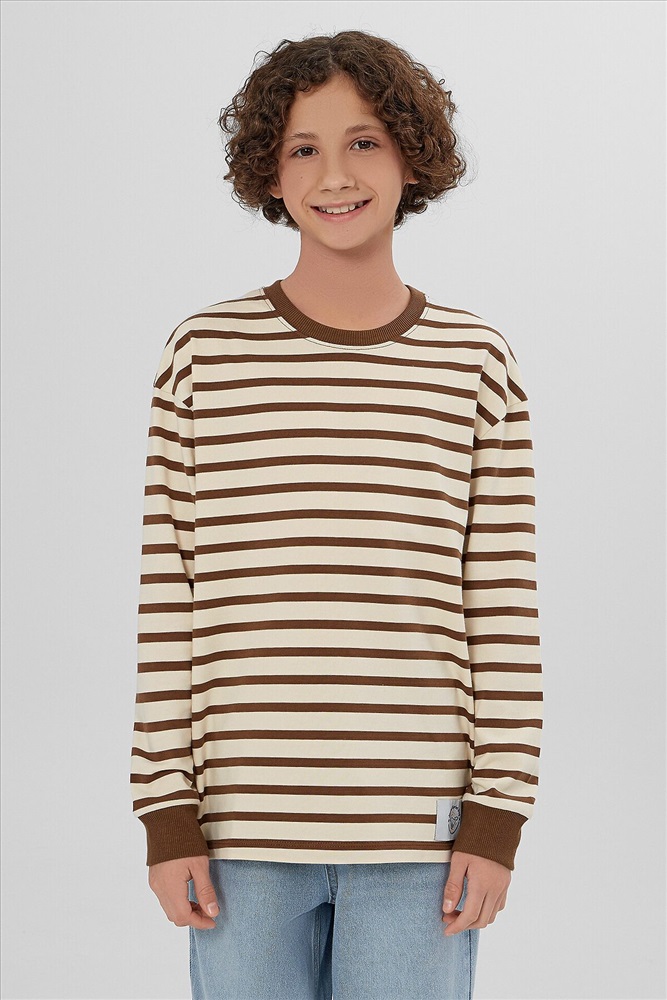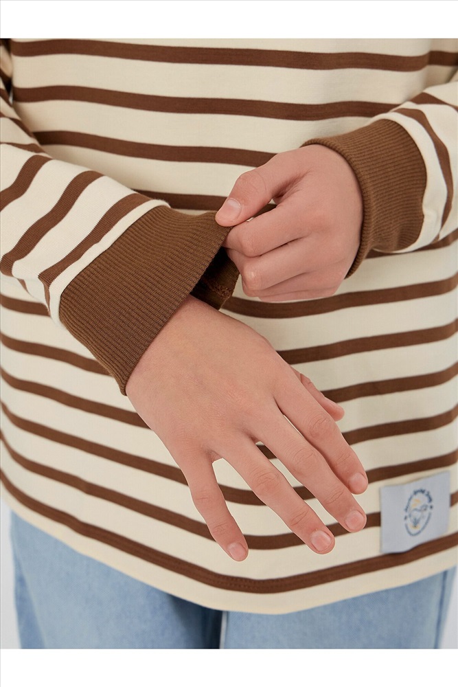 ID товара: 1221274 Состав: 98% Хлопок; 2% Эластан Сезон: Демисезон Длина: Средняя Фасон: Свободный Рукав: длинные Вырез горловины: Круглый Рисунок: Полоски Декоративные элементы: Принт Основная ткань: Хлопок Стиль: повседневный Уход: Деликатная стирка при 30 градусах Особенности модели: Нет Фактура материала: Кулирное полотно Страна бренда: Беларусь Страна производства: Беларусь Детский лонгслив для мальчиков свободного силуэта из высококачественного хлопка. Горловина круглой формы из рибаны. Плечо спущено, пройма углублена. Рукав втачной, длинный. По низу рукава отрезные манжеты из рибаны. Такая модель прекрасно сочетается с джинсами, спортивными брюками или шортами, создавая стильный и уютный образ. Лонгсливы для мальчиков подойдут для повседневных прогулок или активного отдыха на природе. Идеально подобранный лонг поможет мальчику чувствовать себя уверенно и комфортно в любой ситуации. Широкий размерный ряд. Рекомендуем! Комментарии к товару