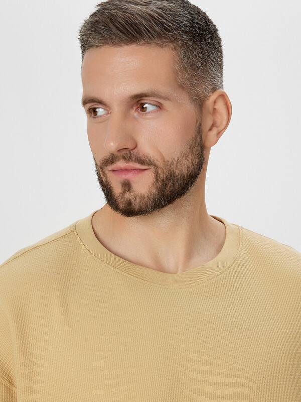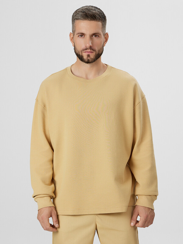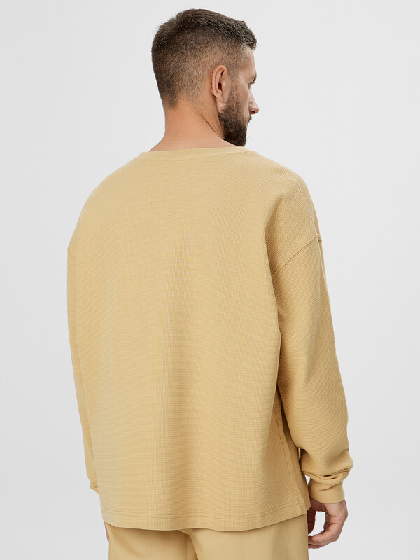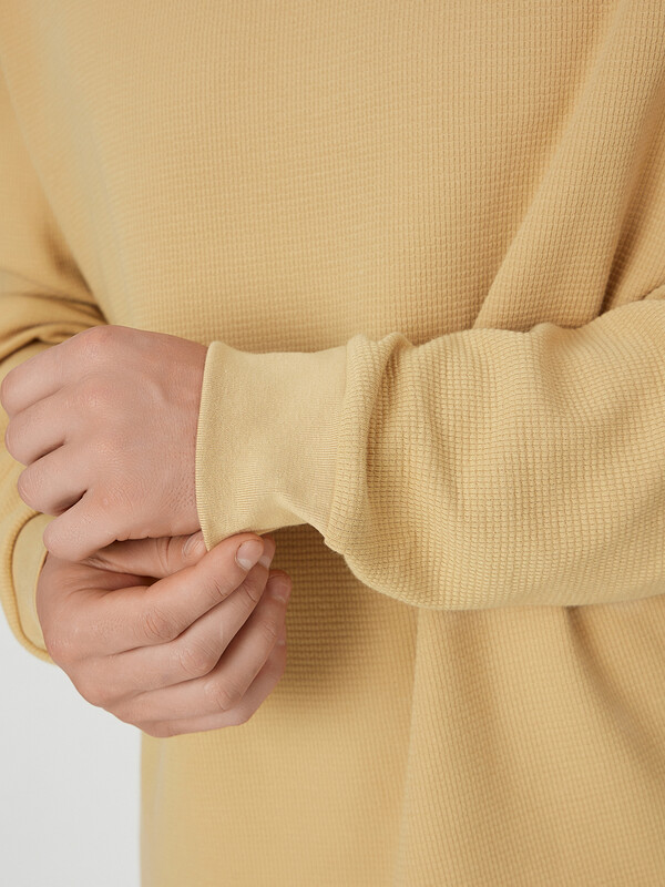 Лонгслив изготовлен из вафельного трикотажного полотна.
