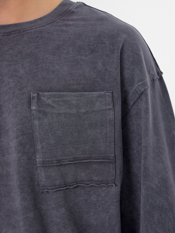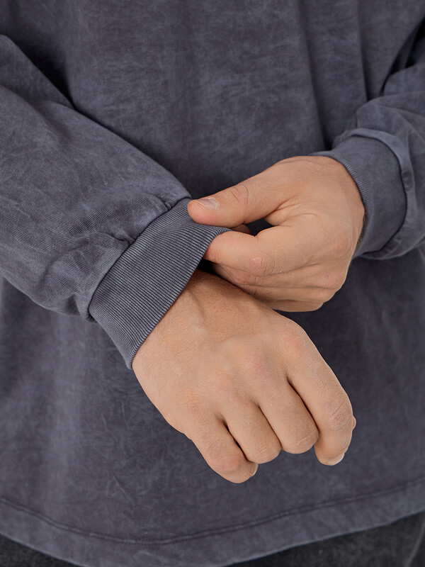 Рукав втачной, длинный, с отрезной манжетой из рибаны. Линия плеча слегка спущена. Лонгслив со швами наружу по линии плеча.