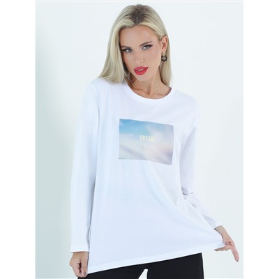 Декоративные элементы: Термопечать Вид застёжки: Без застежки Вырез горловины: Округлый Длина изделия по спинке: 65 Назначение: Повседневная Тип рукава: Длинный Уход за вещами: Бережная стирка при 30 градусах Фактура материала: Трикотажный Состав: 100% хлопок Тип ткани: Трикотаж Цвет: Белый Стильный и удобный лонгслив идеально подойдет для демисезонного периода, обеспечивая комфорт и тепло. Лонгслив изготовлен из качественного трикотажа, выглядит стильно и эффектно. Базовый цвет модели позволит вам создавать яркие и запоминающиеся образы. Особенностью лонгслива является принт на груди. Длинные рукава придают образу легкость и воздушность. Сочетайте этот лонгслив с джинсами или брюками, и вы всегда будете выглядеть модно и актуально. Он прекрасно подойдет как для работы, так и для отдыха, и будет отличным дополнением к вашему гардеробу на прохладную погоду. Длина: 44 размер - 65 см 46 размер - 65 см 48 размер - 66 см 50 размер - 66 см 52 размер - 67 см Бережная стирка при 30 градусах Цвет изделия на фотографии может отличаться от фактического товара, что связано с искажением цветопередачи монитором, настройками фотоаппаратуры и прочими факторами Пропорции