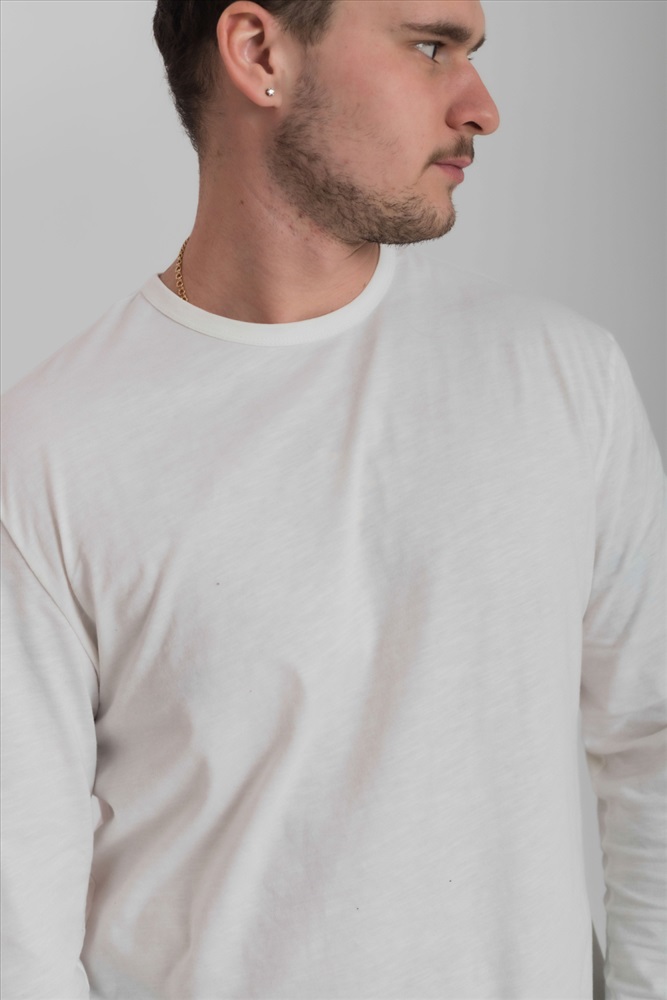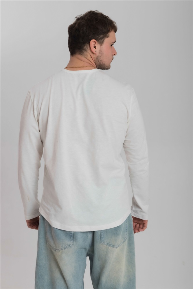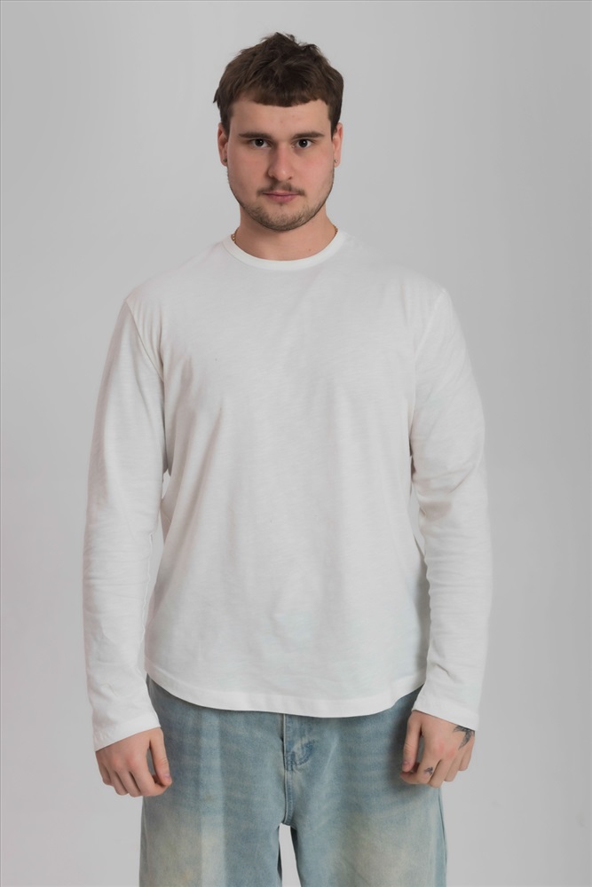 Застежка: Без застежки С капюшоном: Нет С карманами: Нет Сезон: Всесезонный Силуэт: Прямой Состав: Хлопок 100% Цвет Номенклатуры: молочный Лонгслив из однотонной кулирки Фламли. Горловина обработана бейкой. Низ спинки и полочки длиннее боковых сторон. Оформлен фигурно. Комментарии к товару