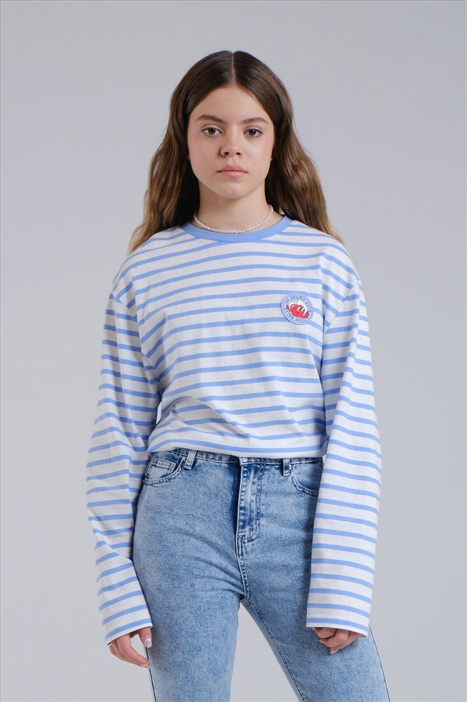 ID товара: 1124601 Акции: -5%, до 24.11.2025 Состав: 100% Хлопок Сезон: Весна/Лето Длина: Средняя Фасон: Прямой Рукав: Длинный Вырез горловины: Круглый Рисунок: Полоски Основная ткань: Хлопок Стиль: Повседневный Страна бренда: Россия Страна производства: Россия Лонгслив для девочки. Выполнен из высококачественного трикотажного полотна, что обеспечивает комфорт и уют в любую погоду. Он отлично тянется, не сковывает движения и позволяет коже дышать. Лонгслив выполнен в актуальную бело-голубую и черно-белую полоску, что позволяет вписать его в любой гардероб. Комментарии к товару