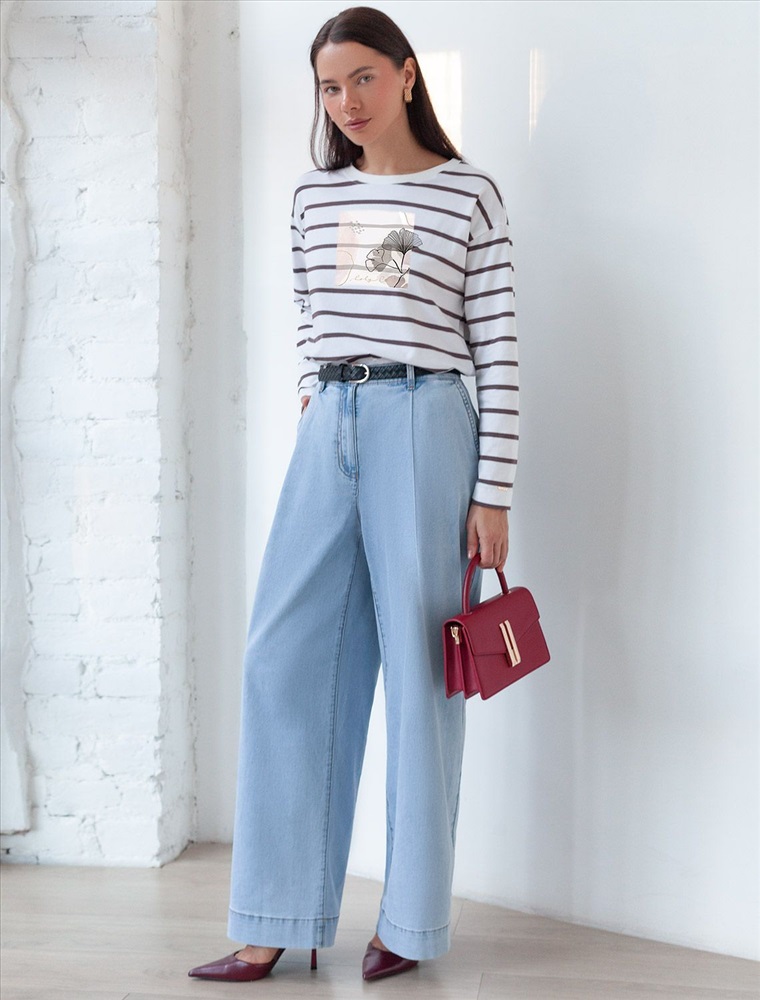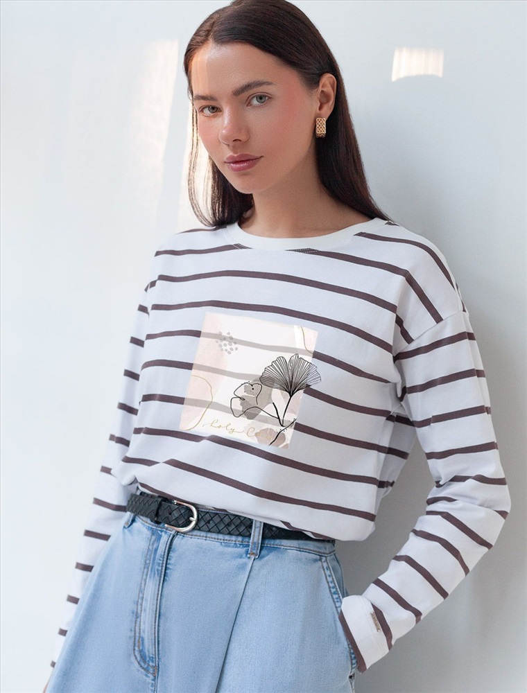 Свободный лонгслив белого цвета в кофейную полоску с длинным рукавом выполнен из премиального хлопка с добавлением эластана, плотностью 170 Г/м2, что обеспечивает комфорт и приятные тактильные ощущения. Полоска - придает изделию легкую текстурность, принт в виде цветка, который нанесен красками с устойчивым покрытием, добавляет стиля и индивидуальности, а круглый ворот создает универсальный образ, который подойдет для повседневного использования. Такой лонгслив идеально подходит для весеннего и летнего сезона благодаря легкой и дышащей ткани. Представленная широкая размерная линейка позволяет выбрать оптимальный вариант на любую фигуру, в том числе на плюс-сайз, обеспечивая свободу движений и удобство на каждый день. Этот комфортный лонгслив станет отличной базой в гардеробе, сочетаясь с различными стилями одежды и создавая простой, но эффектный образ.