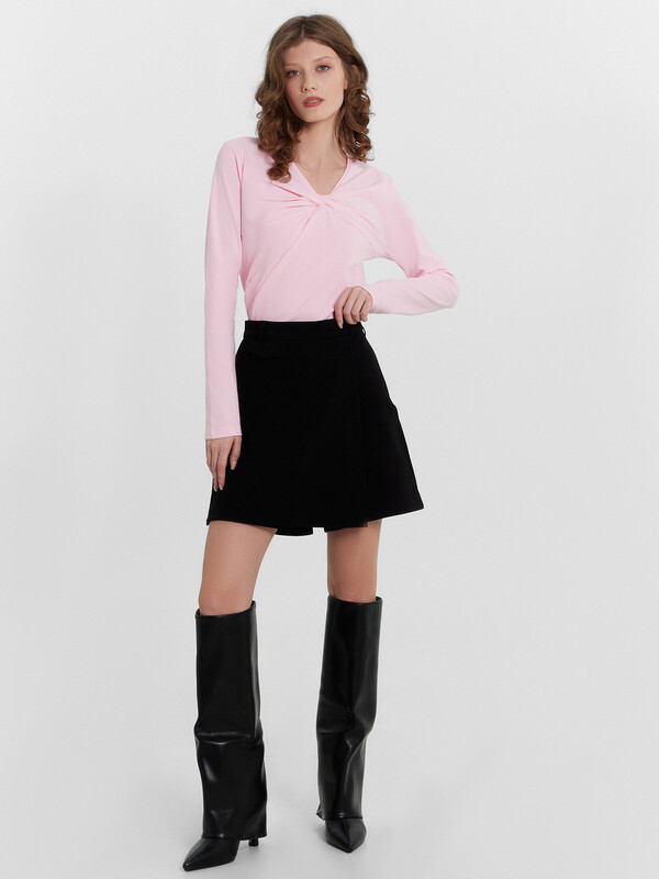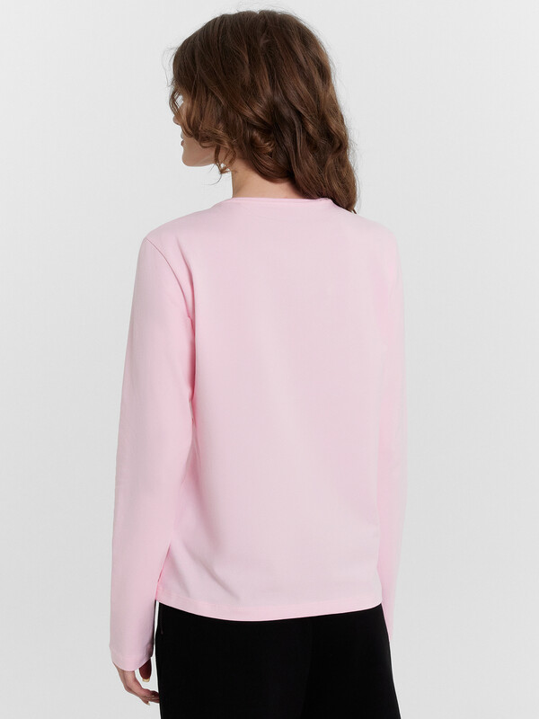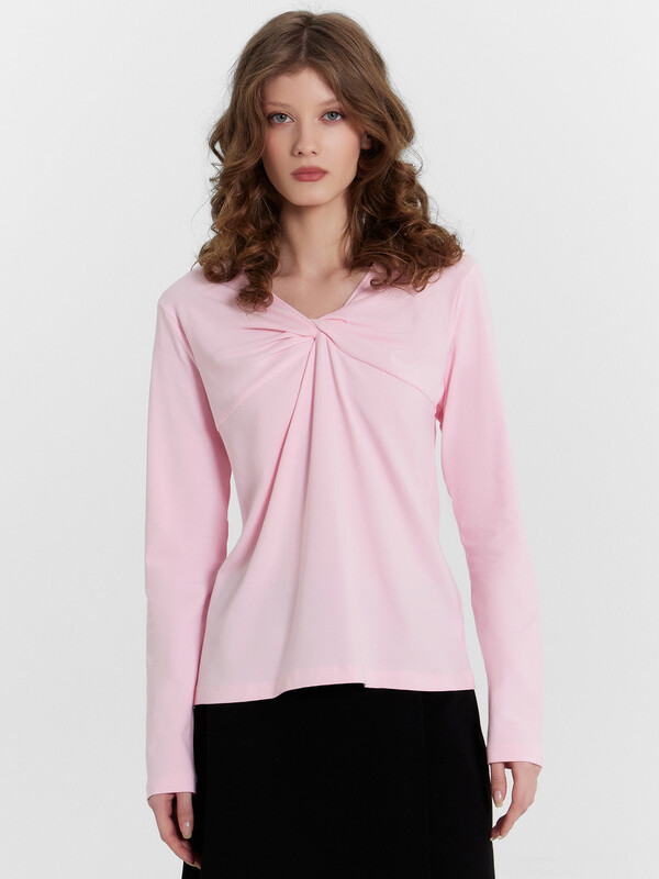 Этот изящный лонгслив прекрасно дополнит ваш гардероб. Он изготовлен из нежной кулирки, что обеспечивает мягкость, эластичность и комфорт при носке. Натуральный материал позволяет коже дышать, не вызывая раздражений, и сохраняет свою форму даже после многократных стирок. Модель имеет прямой силуэт и V-образную горловину с деталью в виде перекрута, добавляющую уникальности. Длинные рукава придают образу элегантность и утонченность. Женский лонгслив от Mark Formelle станет отличным выбором для создания стильных и изысканных образов на каждый день.