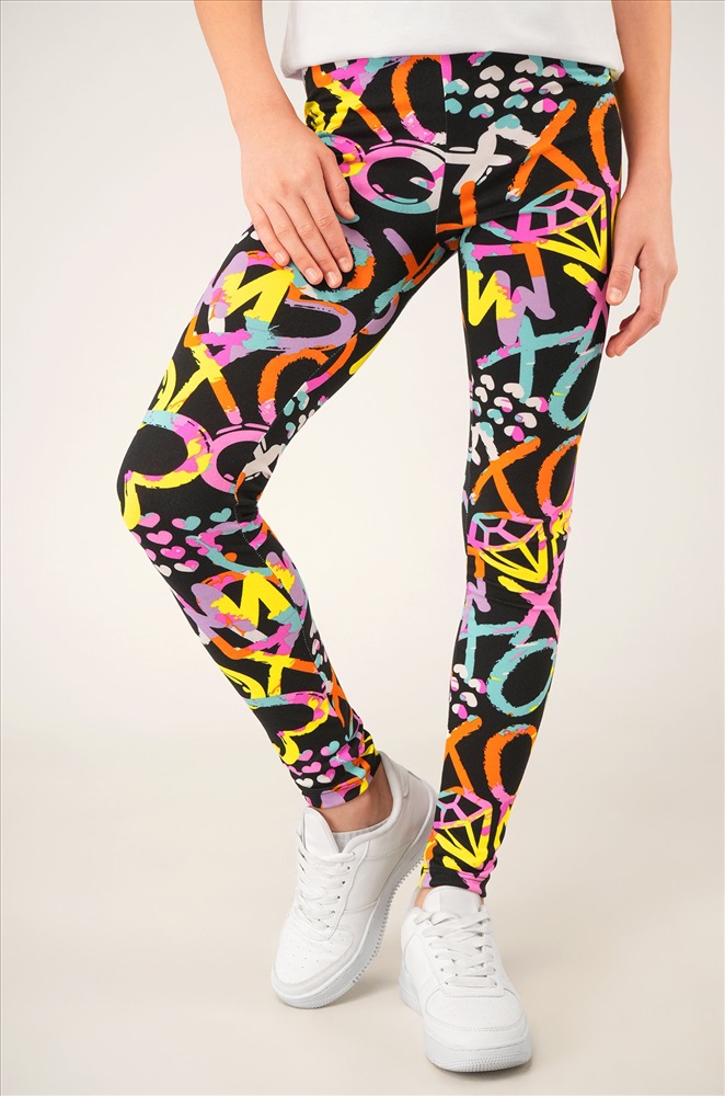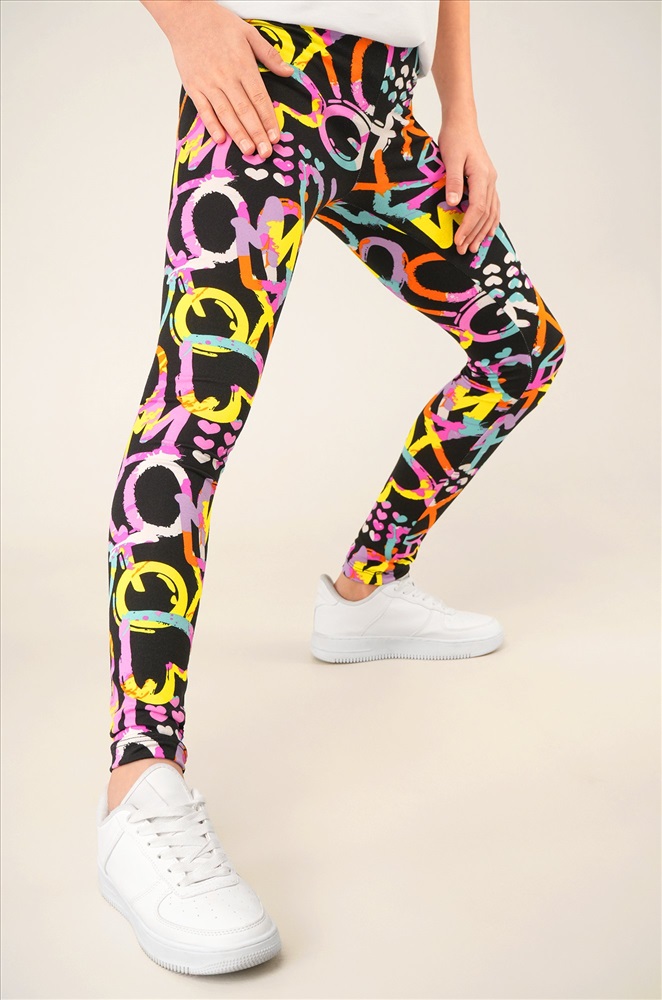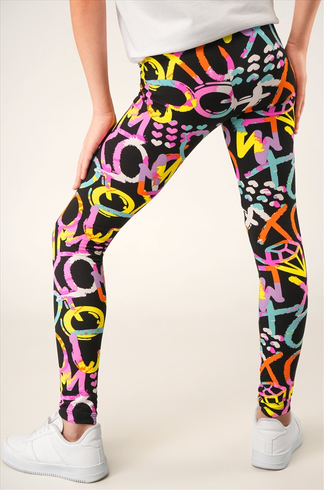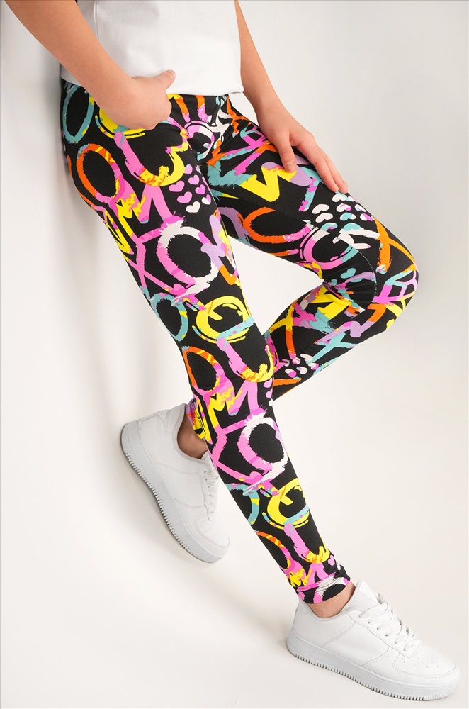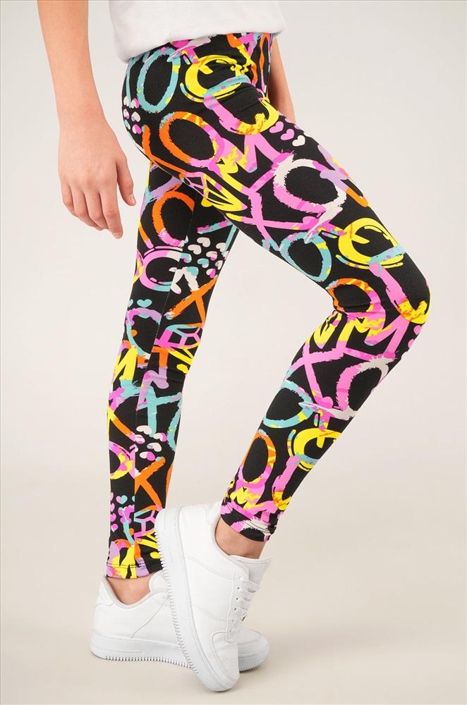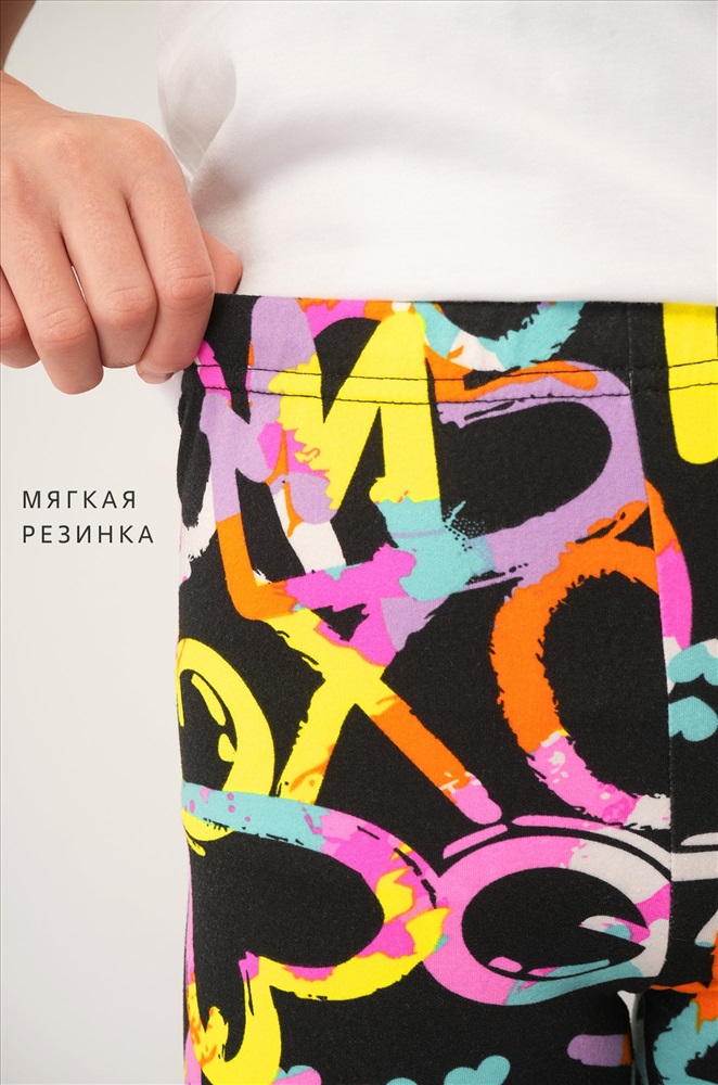 Детские лосины с ярким принтом надписи и сердечки — то, что нужно для активных будней! Облегающий крой, удобная высокая талия и мягкая резинка — отличные характеристики легинсов для девочки. Модель выполнена из приятной к телу трикотажной ткани бамбук.