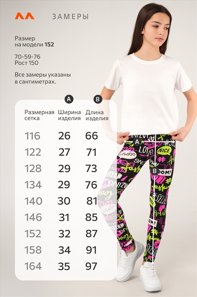 Размер 122: длина внешн.шва:71 см; длина внутр.шва:51 см; ширина по бедрам:27 см. Размер 128: длина внеш. шва: 73 см; длина внут. шва: 52 см; ширина по бедрам: 29 см. Размер 134: длина внеш. шва: 76 см; длина внут. шва: 54 см; ширина по бедрам: 29 см. Размер 140: длина внеш. шва: 81 см; длина внут. шва: 58 см; ширина по бедрам: 30 см. Размер 146: длина внеш. шва: 85 см; длина внут. шва: 61 см; ширина по бедрам: 31 см. Размер 152: длина внеш. шва: 87 см; длина внут. шва: 62 см; ширина по бедрам: 32 см. Размер 158: длина внеш. шва: 91 см; длина внут. шва: 66 см; ширина по бедрам: 34 см. Размер 164: длина внеш. шва: 97 см; длина внут. шва: 71 см; ширина по бедрам: 35 см. *замеры выборочные, могут незначительно отличаться. Комментарии к товару