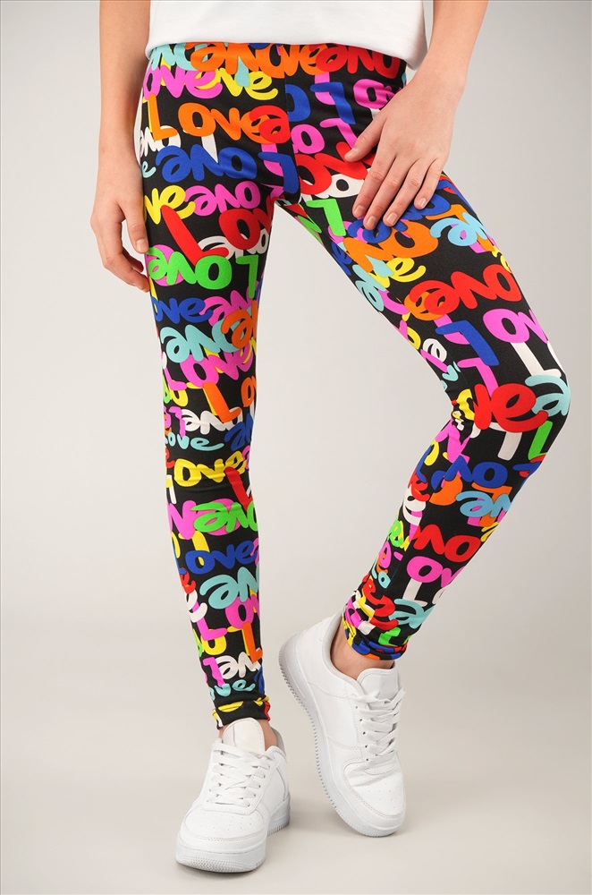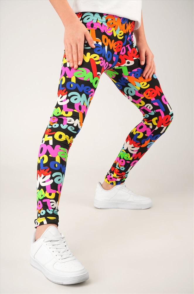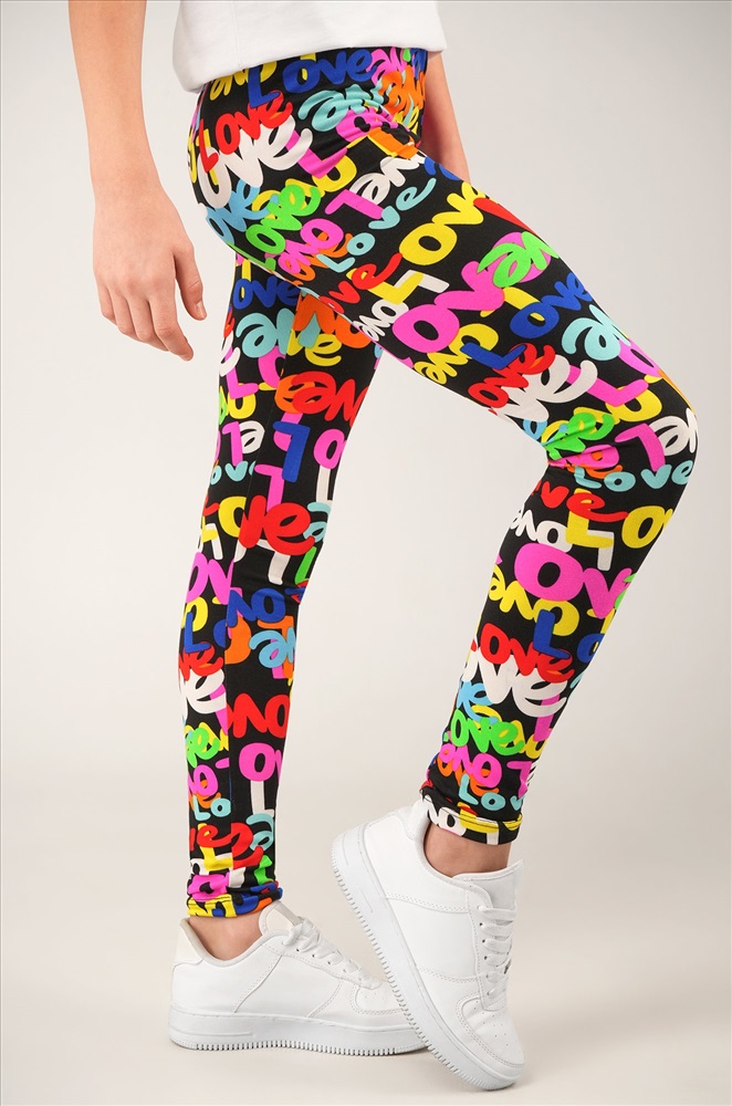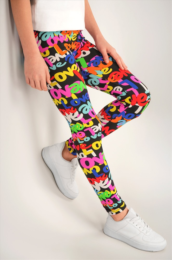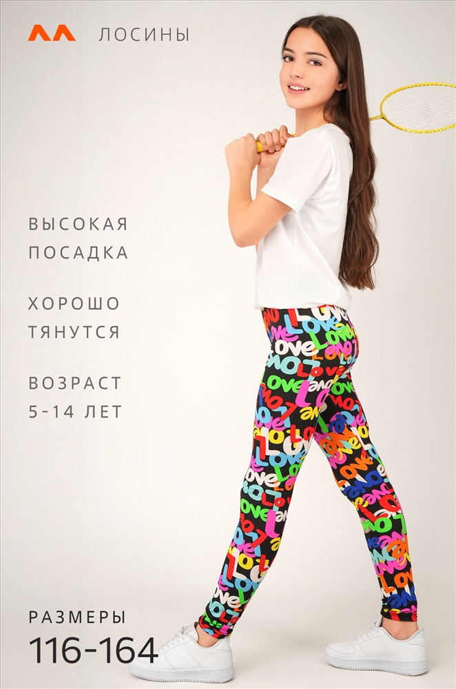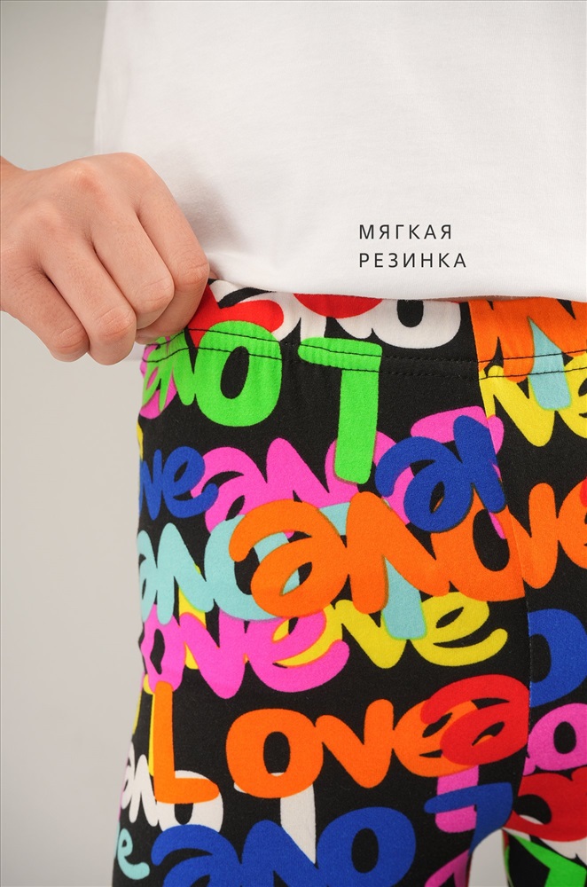 Детские лосины с ярким принтом надписи — то, что нужно для активных будней! Облегающий крой, удобная высокая талия и мягкая резинка — отличные характеристики легинсов для девочки. Модель выполнена из приятной к телу трикотажной ткани бамбук.