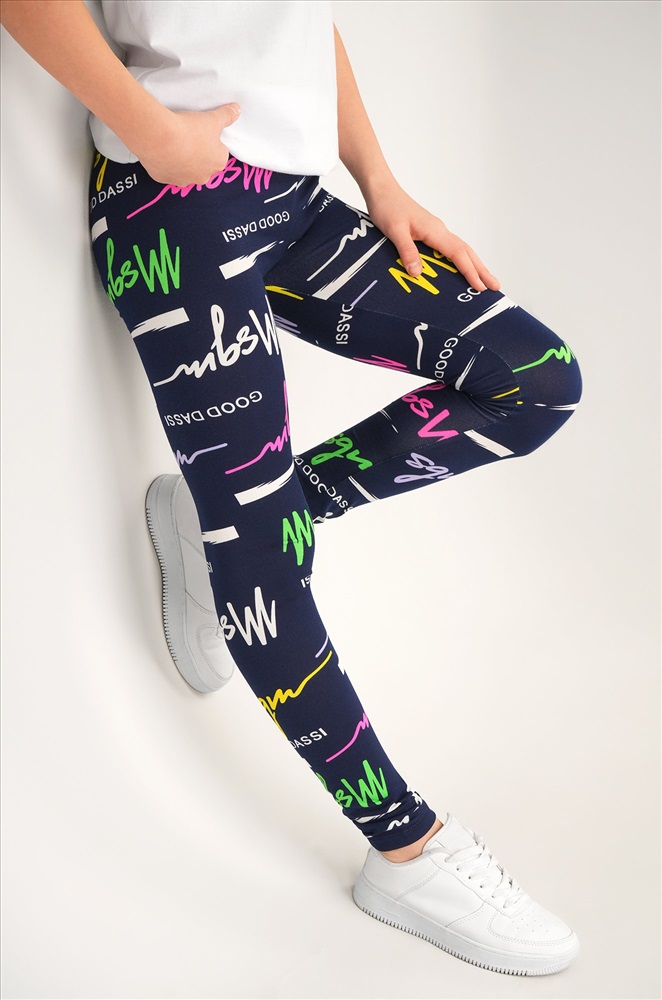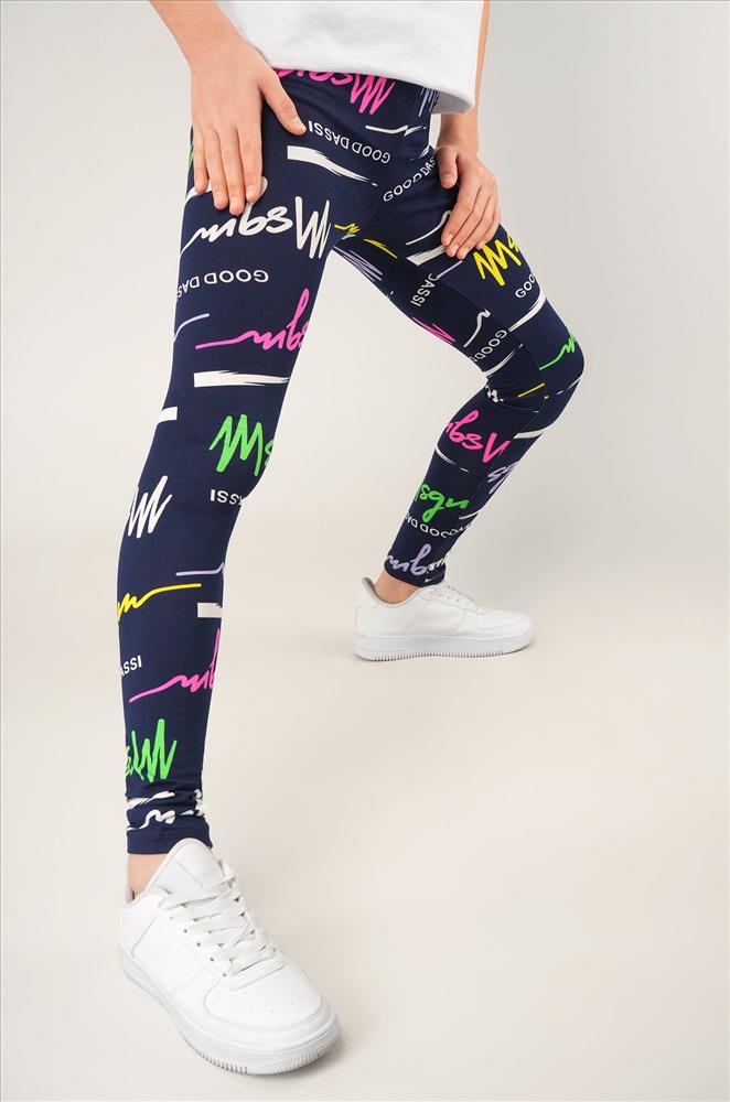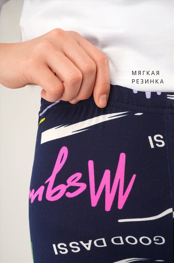 Детские лосины с ярким принтом надписи — то, что нужно для активных будней! Облегающий крой, удобная высокая талия и мягкая резинка — отличные характеристики легинсов для девочки. Модель выполнена из приятной к телу трикотажной ткани бамбук.
