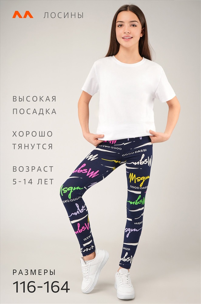 Преимущества: — нежный трикотаж из хлопка с добавлением полиэстера, мягкий и комфортный для активных игр; — удобная посадка благодаря высокой талии и мягкой резинке; — яркий цветной рисунок, который понравится ребенку; — универсальные обтягивающие лосины не стесняют движений; Эластичные тайтсы для спорта и отдыха — в них удобно бегать, прыгать и танцевать. Спортивные штаны станут любимыми для занятий физкультурой, активного отдыха, повседневных прогулок, детского сада и дома — настоящая находка для девочки и подростка!