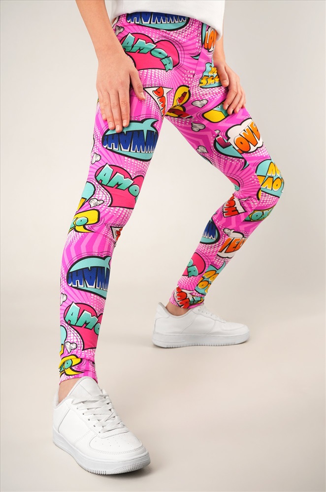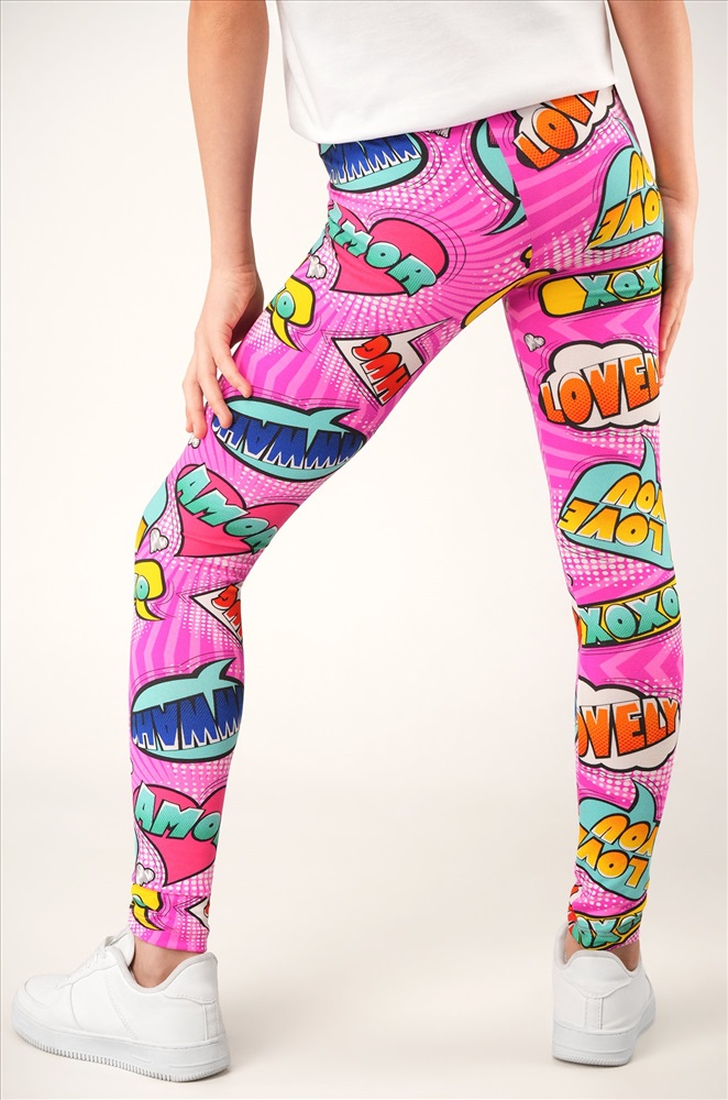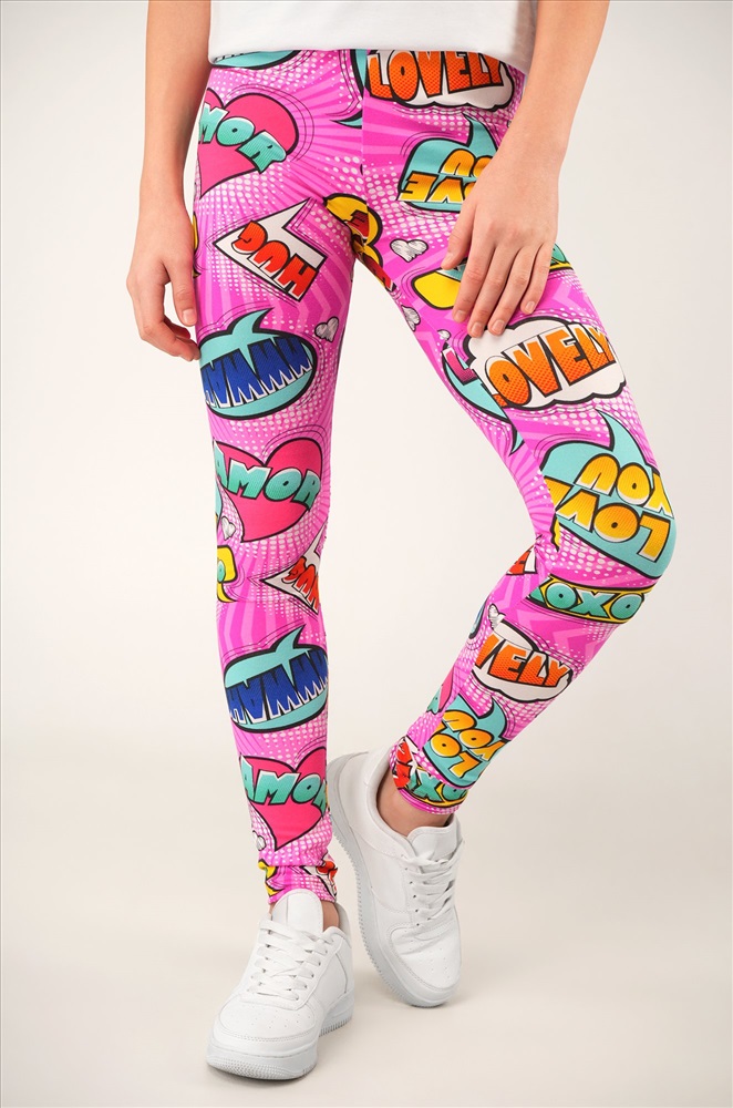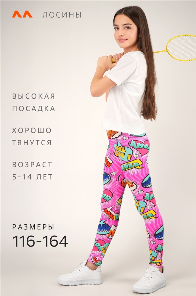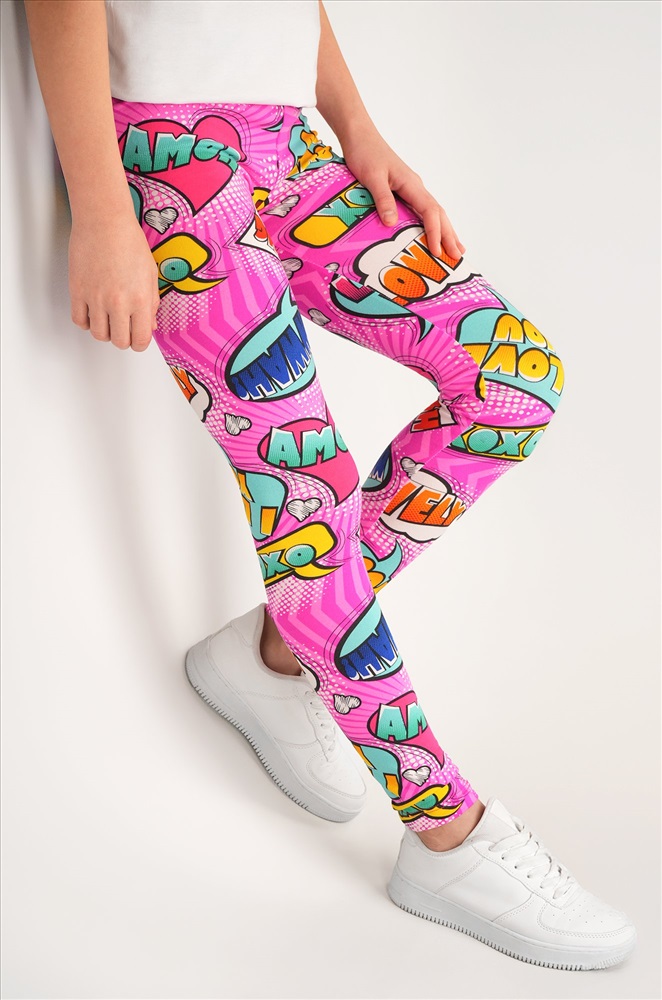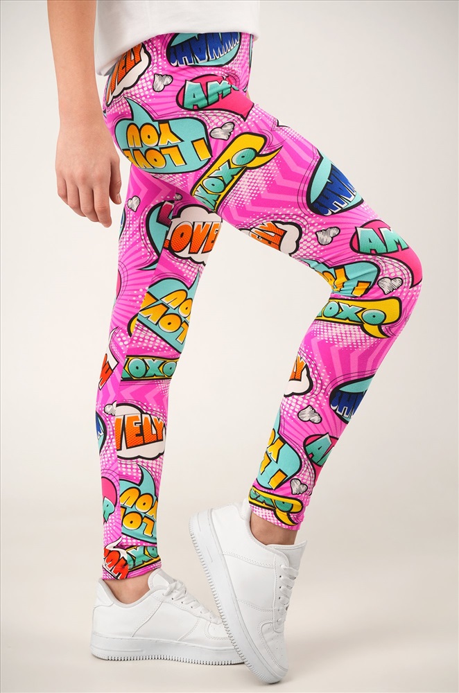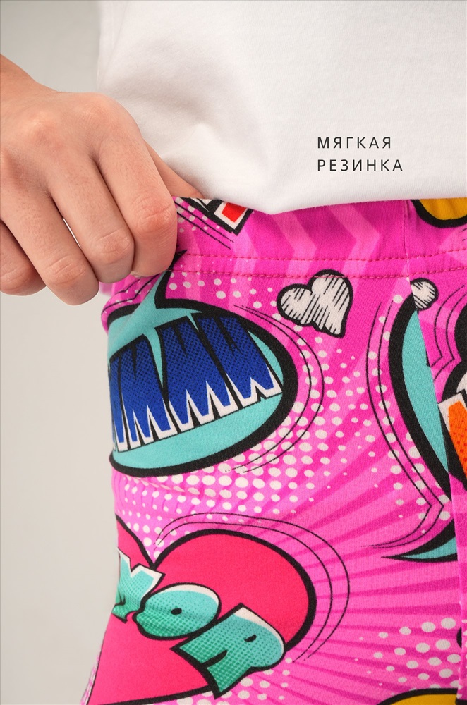 Детские лосины с ярким принтом надписи — то, что нужно для активных будней! Облегающий крой, удобная высокая талия и мягкая резинка — отличные характеристики легинсов для девочки. Модель выполнена из приятной к телу трикотажной ткани бамбук.