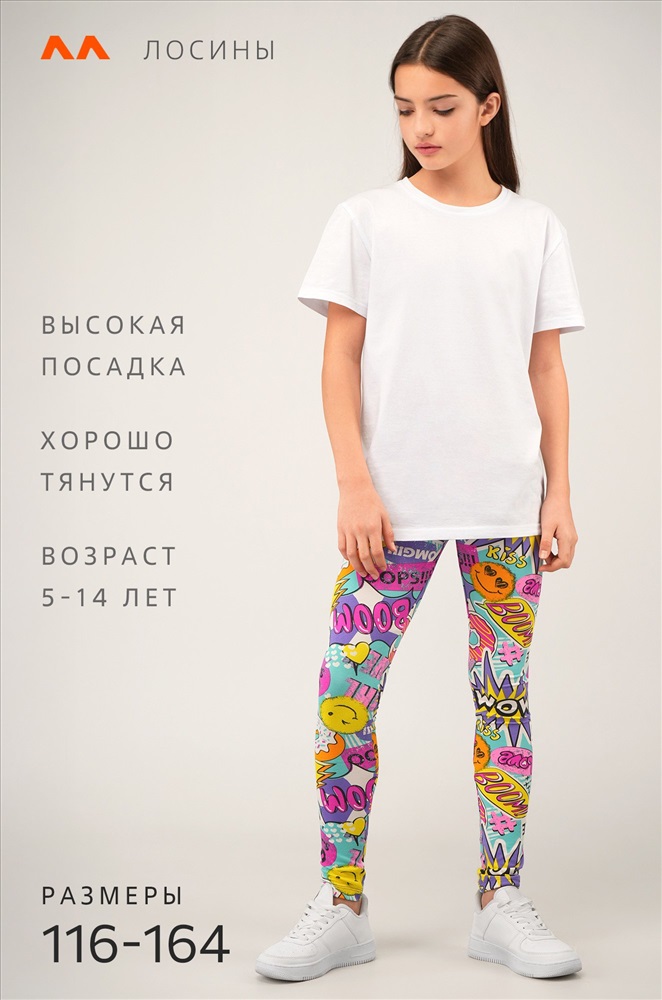 Преимущества: — яркие легинсы выполнены из мягкой ткани бамбук (хлопок + полиэстер); — благодаря эластичному трикотажному полотну лосины подходят для спорта и активных игр; — высокая талия обеспечивает комфортную посадку; — эластичный пояс на резинке; — яркий принт сохраняет насыщенность после стирок; Легинсы для детей и подростков идеальны для танцев, физкультуры и прогулок. Размер 116: длина внешн.шва:66 см; длина внутр.шва:48 см; ширина по бедрам:26 см.