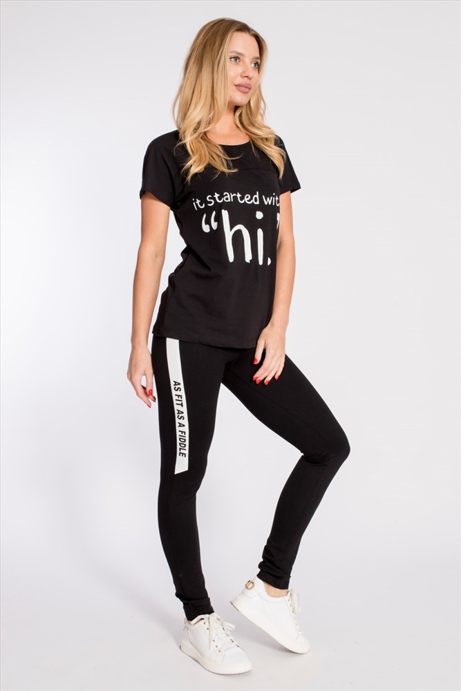 Вид ткани: Футер двухниточный Сезон: Всесезонный Силуэт: Облегающий Состав: Хлопок 95% Лайкра 5% Цвет Номенклатуры: черный Лосины выполнены из футер петли с лайкрой. На боковых вставках нанесён термопринт. Комментарии к товару