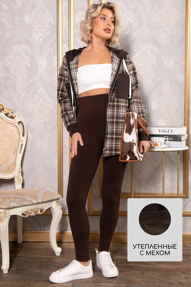 Представляем вам утепленные лосины в стильном шоколадном цвете с высокой посадкой. Эти лосины с начесом гарантируют комфорт и тепло в холодное время года, что делает их отличным выбором для прохладной погоды. Они идеально подходят для прогулок, работы, домашнего уюта и активного образа жизни. Легко сочетаются с объемными свитерами, куртками, пальто и длинными туниками или платьями, создавая разнообразные модные образы. Обеспечьте себе тепло и уют в любую погоду с нашими женскими утепленными лосинами!