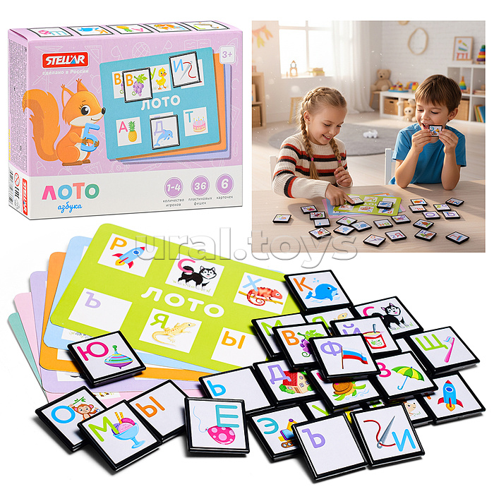 • Набор состоит из 36 фишек, 6 карточек и мешочка для хранения.
