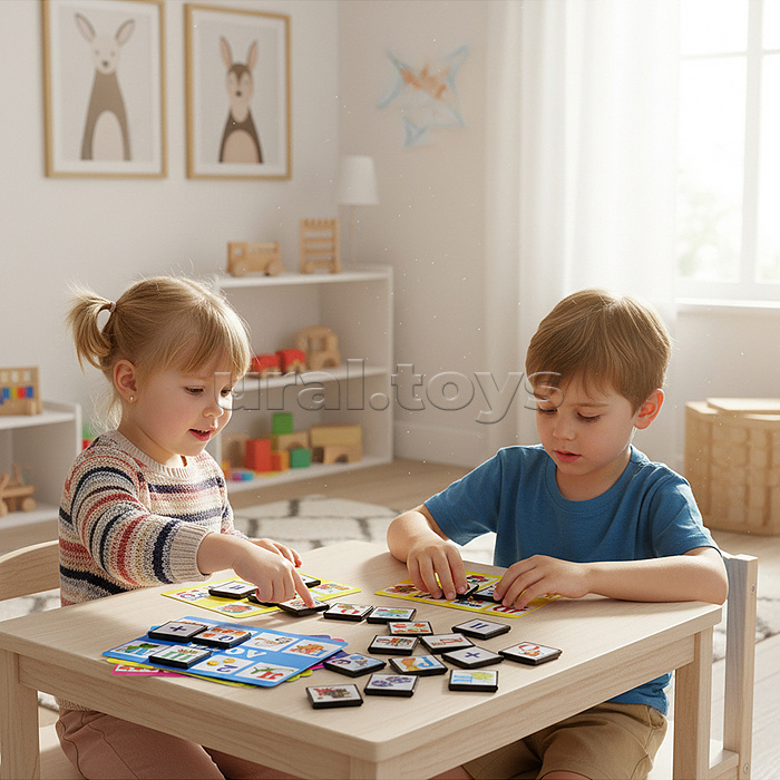 Код: 005288 Страна производитель: Россия Размеры упаковки: 17 x 4 x 12.5 см Количество в коробке: 16 • В наборе: • 6 картонных карточек. • 48 пластиковых фишек. • мешочек. • Фишки складываются в мешочек, игрокам раздаются карточки. Ведущий достаёт фишки из мешка, а игроки накрывают ими совпавшие картинки. • Материалы: картон, пластик. • Соответствует требованиям безопасности продукции. • Для детей от 5 лет. Комментарии к товару