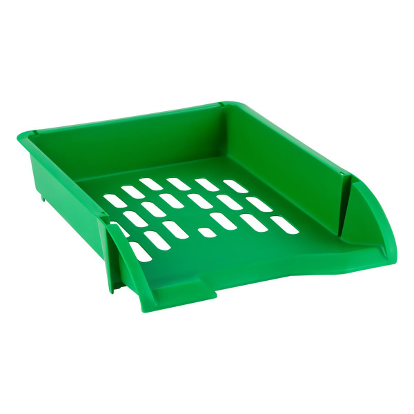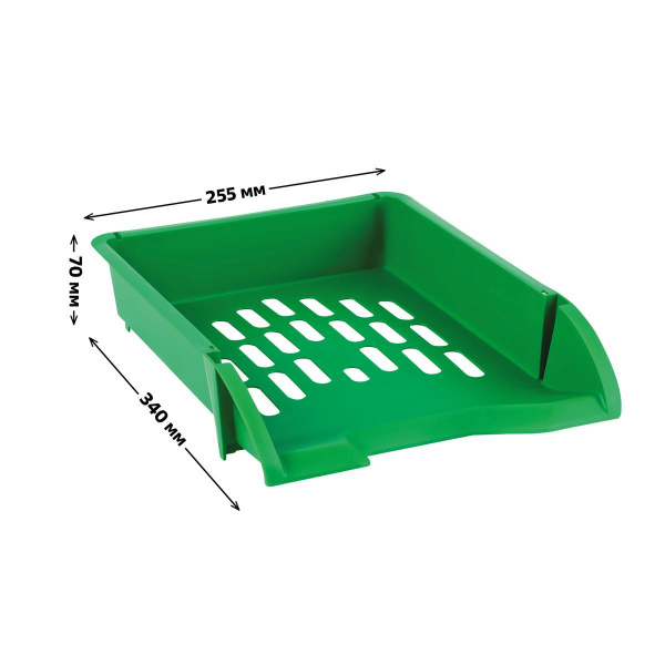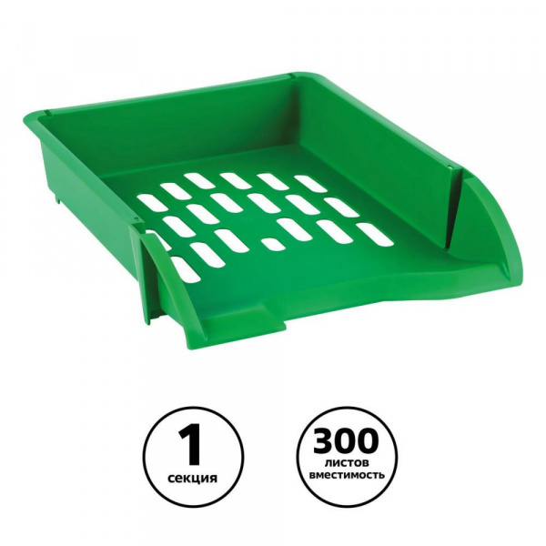 Лоток для бумаг горизонтальный «СТАММ» серии «Лидер» подходит для хранения бумажной продукции формата А4. Прочный, вместительный корпус. Изделие высотой 70 мм вмещает до 300 листов. Цвет лотка – зелёный. Лоток имеет современный дизайн и сетчатую поверхность. Предусмотрена возможность установки одного лотка на другой. Изготовлен из качественного полипропилена.
