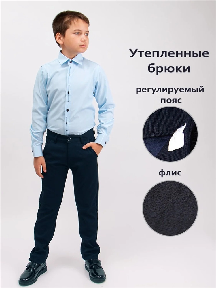 Стильные, утеплённые брюки классического фасона. Пояс изнутри регулируется по полноте, есть шлевки для ремня, удобные боковые карманы. Утеплитель - флис мягкий, легкий материал, идеально согревающий в холодное время года.
