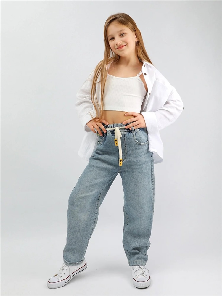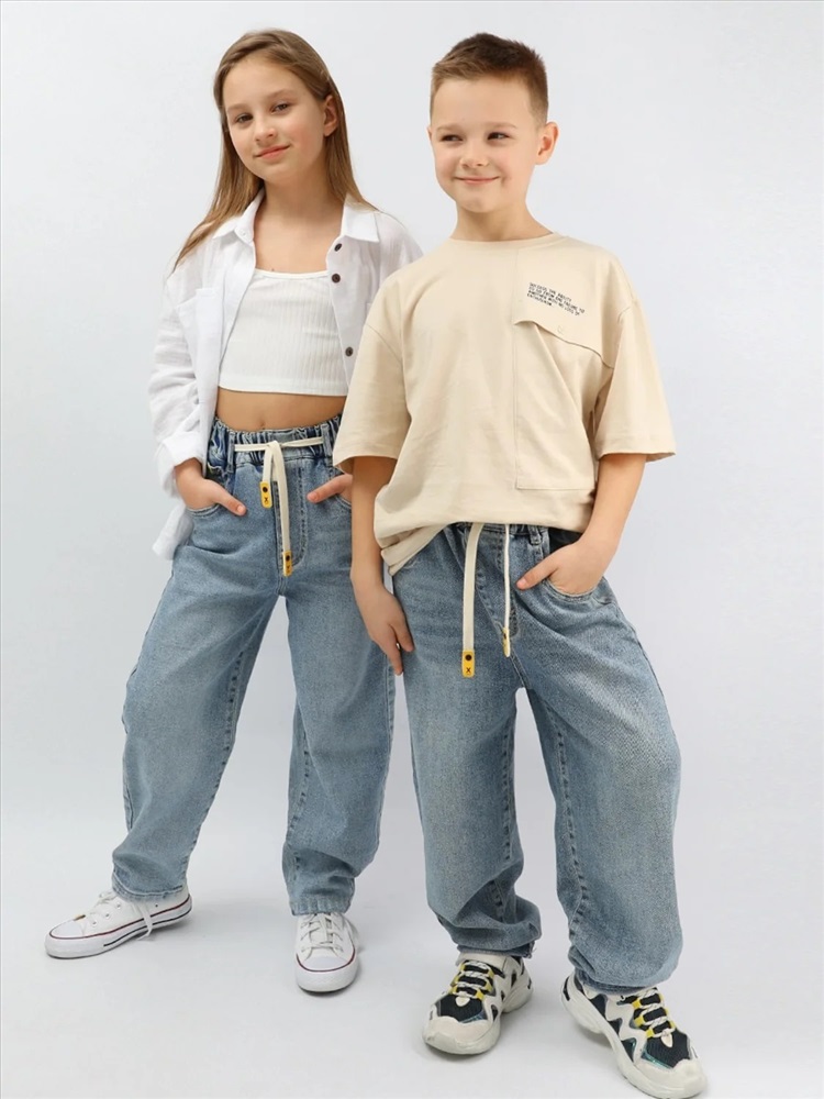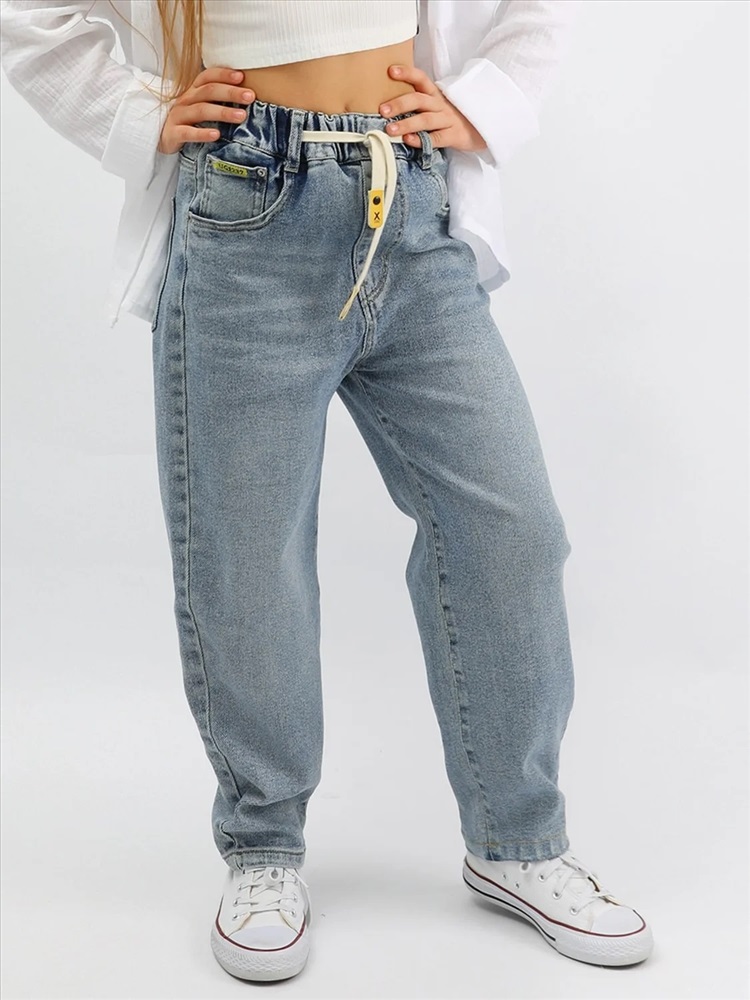 Джинсы-бананы Lovey.CC. Трендовая модель из эластичного денима, на широкой резинке, без молнии и пуговиц.