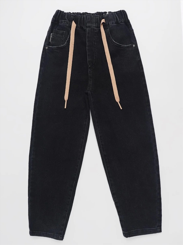 Джинсы Lovey.CC. Трендовая модель из эластичного денима, на широкой резинке, без молнии и пуговиц. Брючины свободные в районе бедер и зауженные к низу.