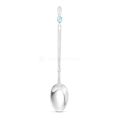 Ложка из серебра с плавленым кварцем цвета топаз родированная - Дорогому крестнику 11,3 см 5-006102