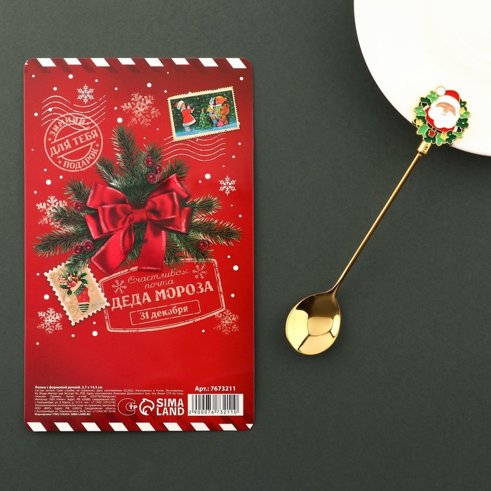 Габариты: 19,5 x 11 x 1 Страна: Китай В боксе: 625 шт Состав: Коррозионностойкая сталь Материалы: Коррозионностойкая сталь Фасовка: по 25 шт Индивидуальная упаковка: Подложка, пакет Сертификат: СТР Набор: Нет Цвет: Золотистый Длина, см: 14 Материал ручки: Металл Рисунок: Нет Символ года: Нет Тематика праздника: Новый год Материал: Металл Назначение: Сувенирные, Чайные Можно мыть в посудомоечной машине: Да Цвет ручки: Золотистый Матовая поверхность: Нет Внешний вид: С фигурной ручкой, Новогодние Новый год — праздник, который с нетерпением ждут и взрослые, и дети. Это день, когда все мы не просто хотим получить подарок, а попасть на мгновение в сказку, наполненную чудесами и волшебством. Ложка новогодняя с формовой ручкой «Твоя посылка от Деда Мороза», на Новый год, нержавеющая сталь, 2,6 х 14 см — чудесный подарок, способный сделать грядущий год таким, каким вы пожелаете. А современный новогодний дизайн открытки не оставят равнодушным, и ваш подарок запомнится надолго! Комментарии к товару