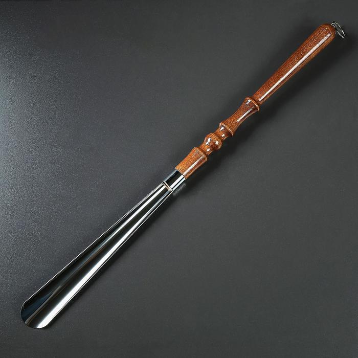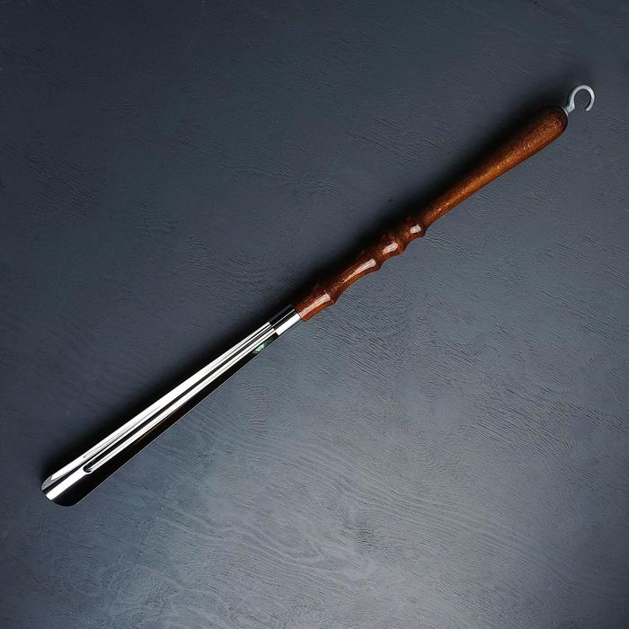 Крепкая металлическая обувная ложка с деревянной буковой ручкой. Станет вашим верным помощником и послужит отличным подарком.