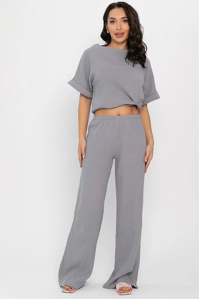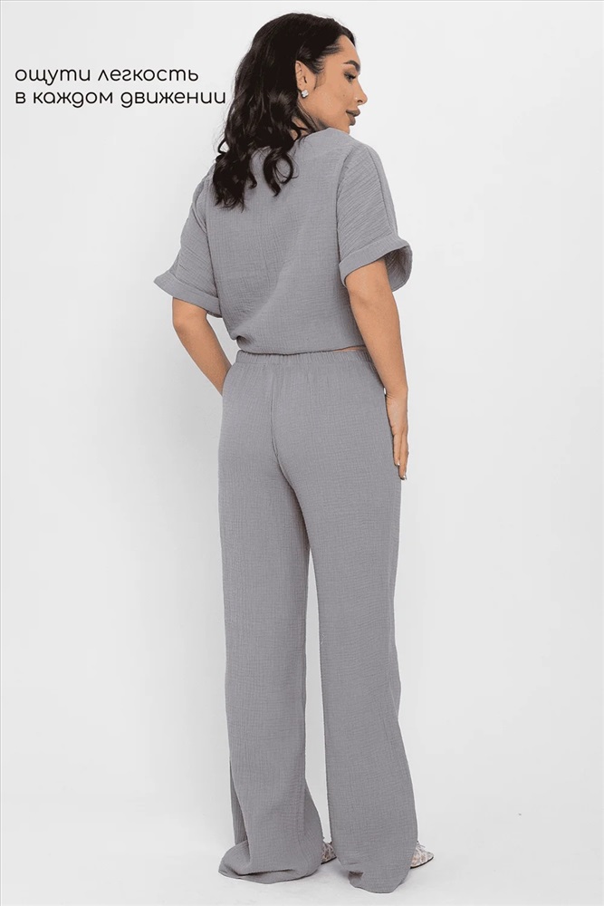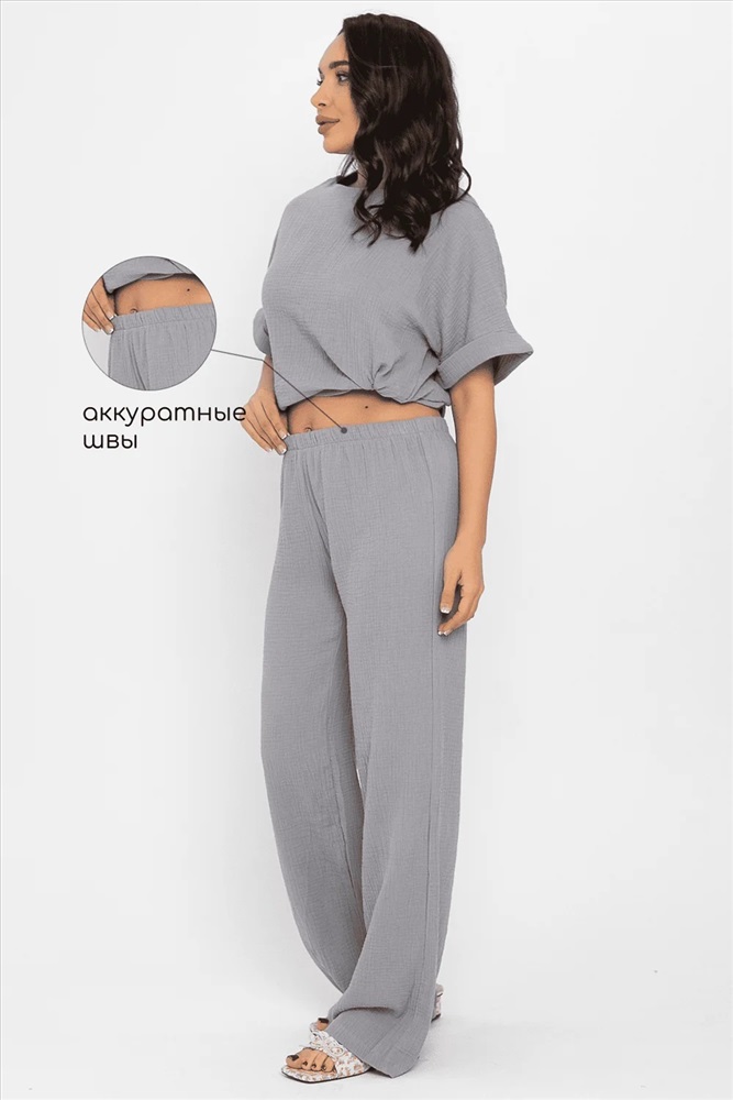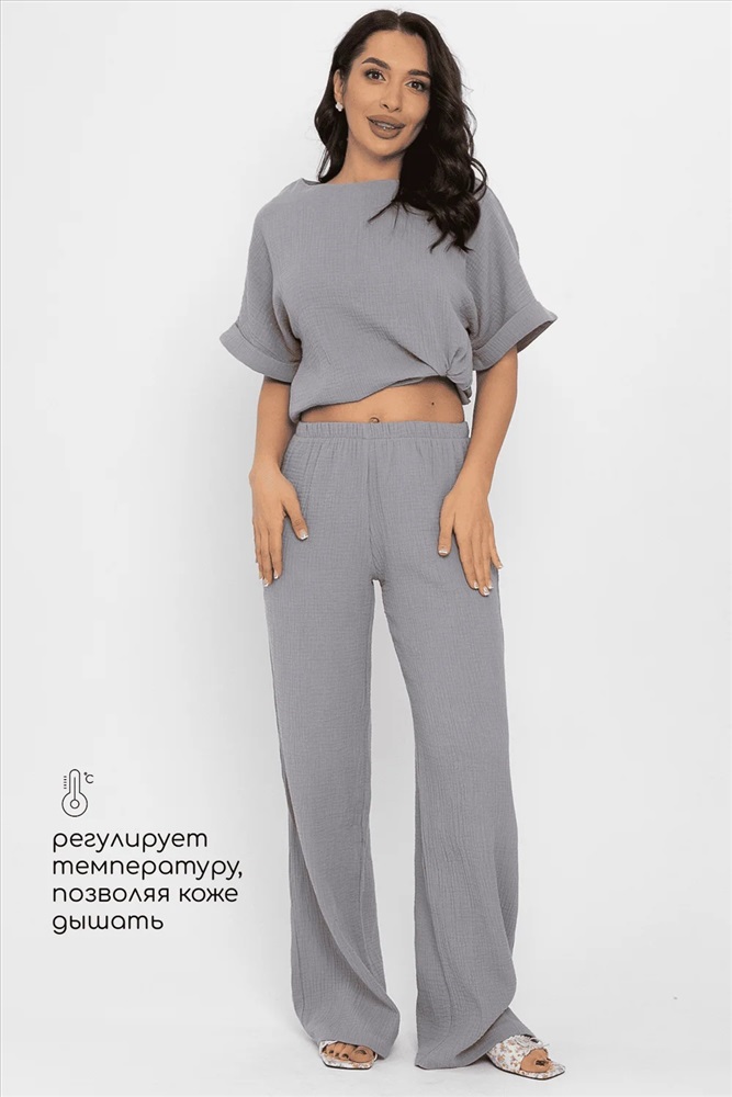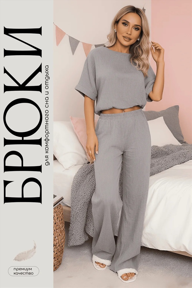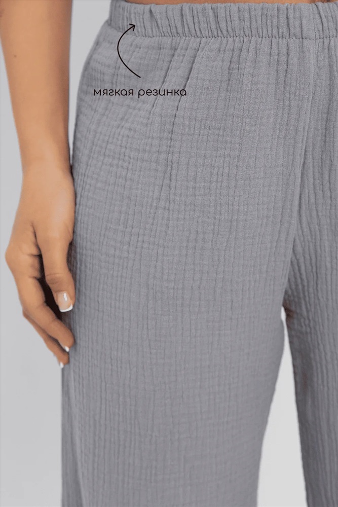 Идеальные домашние брюки-палаццо из муслина – это воплощение комфорта и стиля! Они подарят вам истинное наслаждение, позволяя расслабиться после напряжённого дня. Резинка по талии обеспечивает идеальную посадку и дополнительный комфорт.