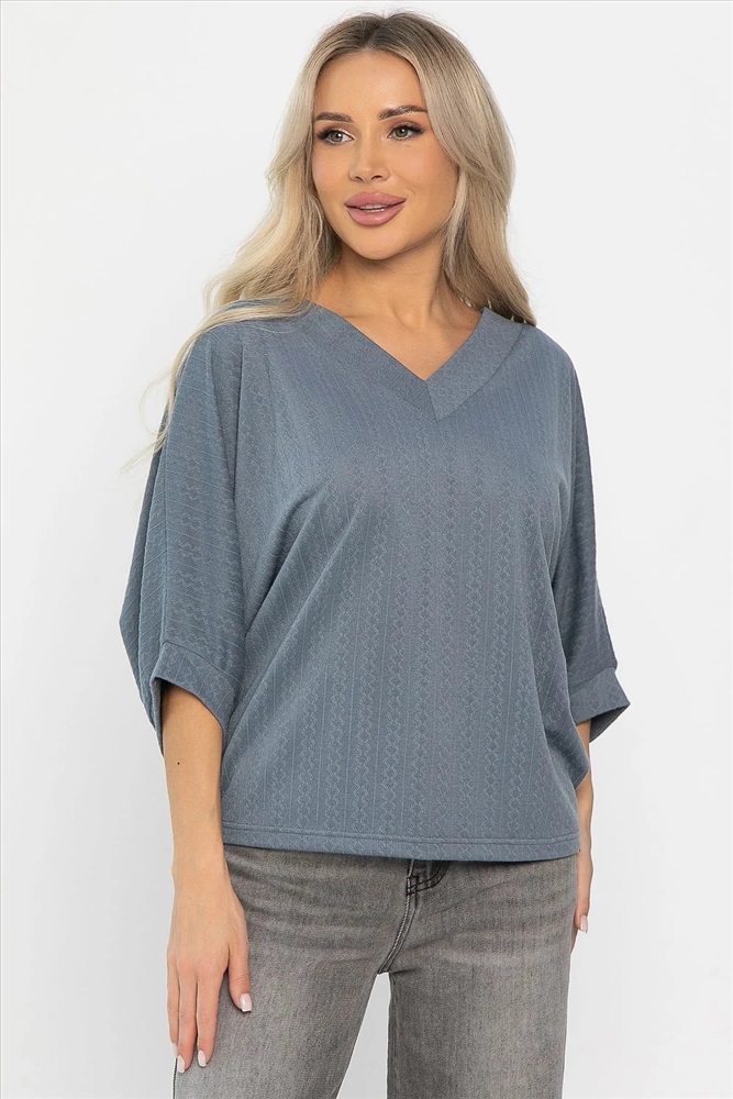 Преобразите свой стиль с нашим удобным трикотажным джемпером в оттенке джинс! Благодаря V-образному вырезу на горловине, джемпер подчёркивает изящество шеи. Рукав скроен по типу «летучая мышь», что придаёт образу лёгкость и воздушность. Свободный крой джемпера скрывает недостатки фигуры. Этот джемпер отлично сочетается с юбками, брюками и джинсами, позволяя создавать разнообразные образы для любого случая.