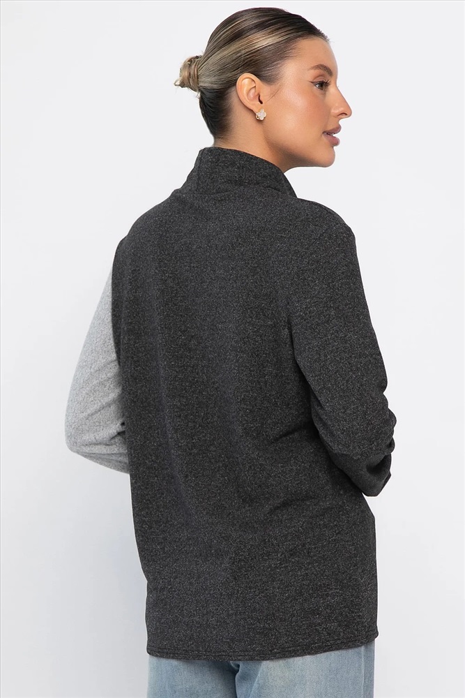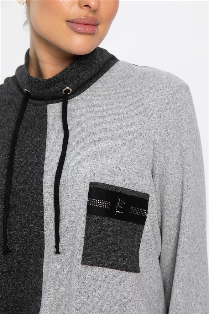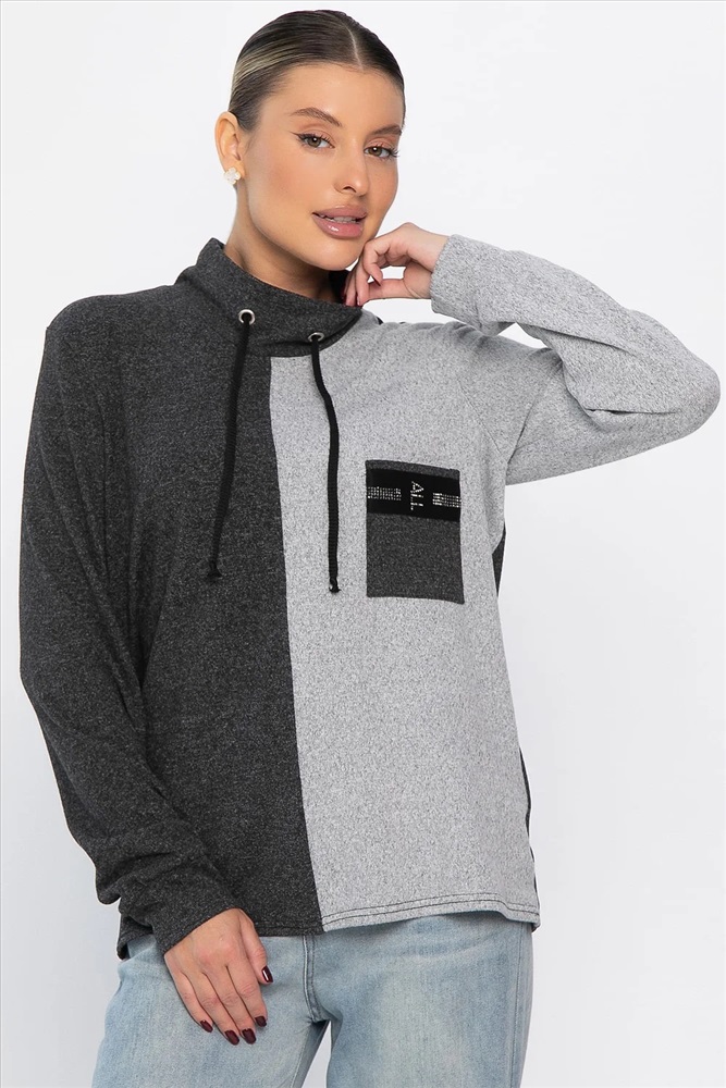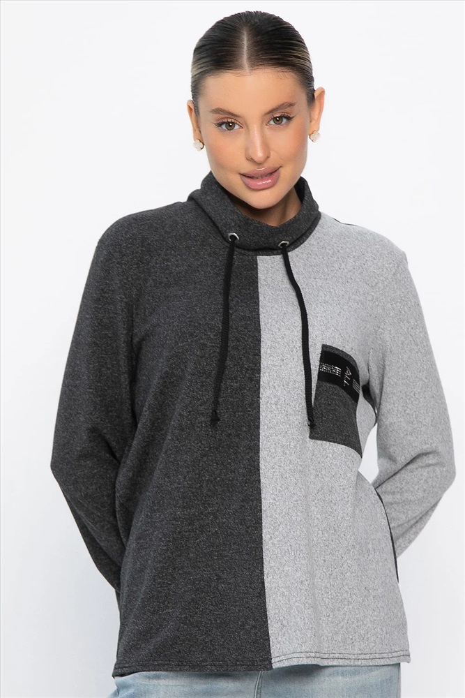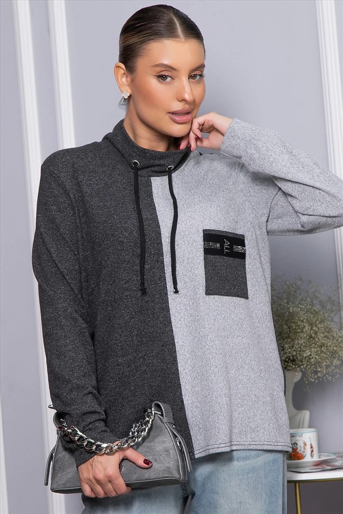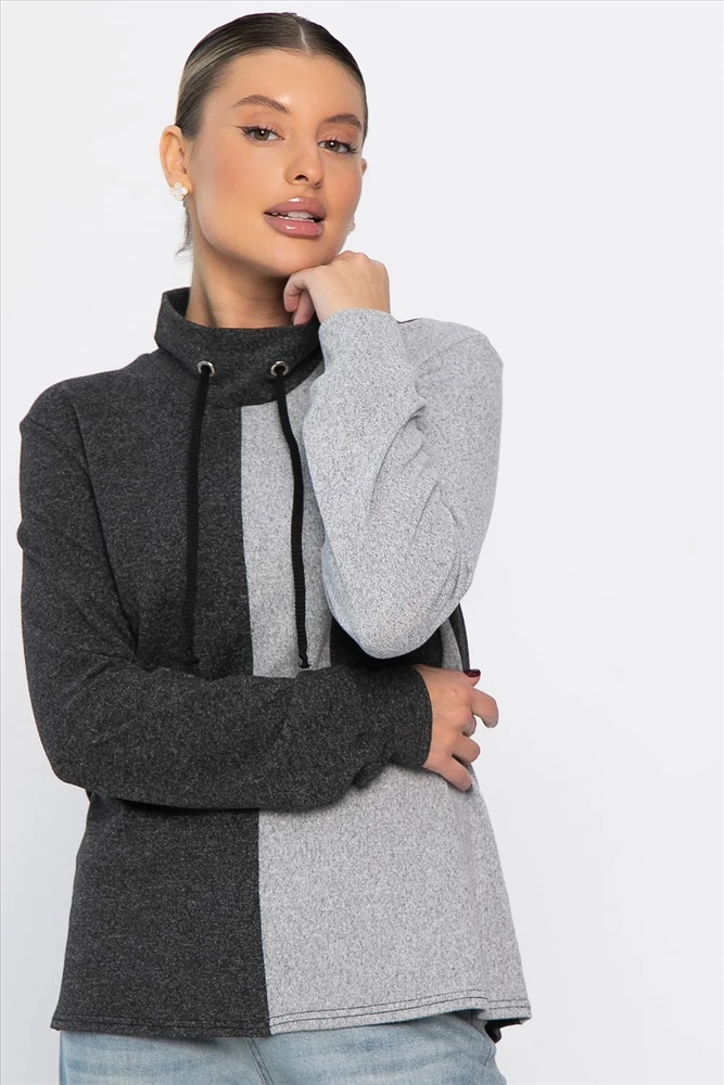 Двухцветный трикотажный джемпер — идеальный выбор для тех, кто ценит стиль и уют. Длинные рукава, горловина на кулиске делают его максимально комфортным. Джемпер прекрасно подойдет для встреч с друзьями, активного отдыха, занятий спортом и повседневной носки.