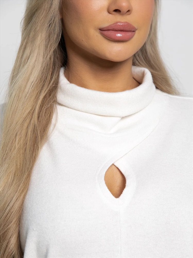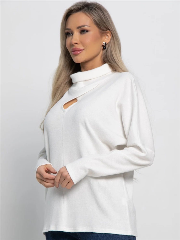 Разнообразьте свой гардероб стильным джемпером, который станет универсальным элементом вашего образа. Изготовленная из мягкого вязаного трикотажа, она обеспечит вам комфорт на протяжении всего дня. Джемпер имеет спущенные рукава и горловину в форме хомута. Каплевидный вырез привлекает внимание, придавая образу изысканности. Эта модель станет основой для создания разнообразных стильных образов. Она идеально подходит для прохладных вечеров и осенних прогулок, и непременно займёт почётное место в вашем гардеробе.