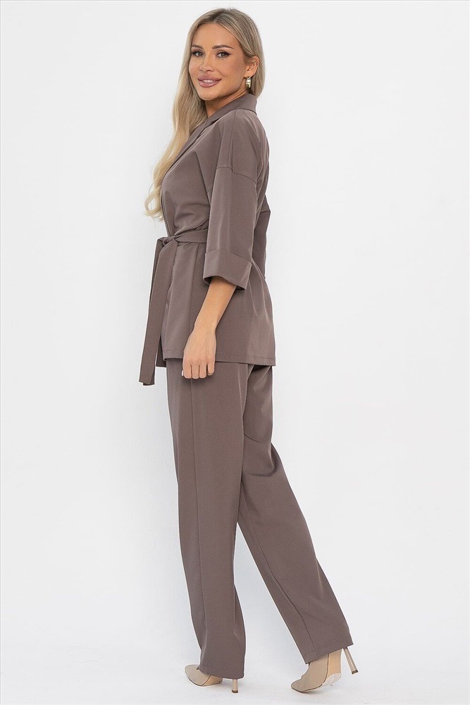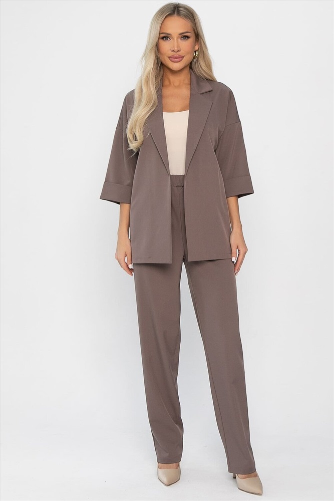 Стильный комплект состоит из пиджака свободного кроя и брюк прямого кроя, которые идеально дополняют друг друга! Пиджак оснащён английским воротником и спущенным плечом, что придаёт ему расслабленный и модный вид. Брюки по талии на резинке, что обеспечивает максимальный комфорт. В боковых швах расположены удобные карманы, а зауженный к низу силуэт добавляет элегантности и стройности. Этот комплект станет отличным выбором для любого случая, позволяя вам выглядеть стильно и уверенно!