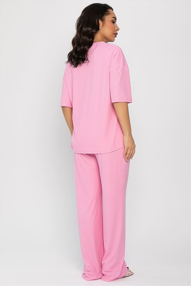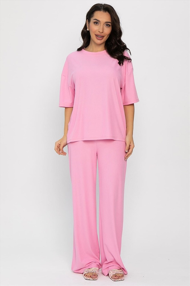 Женский домашний костюм из мягкого и приятного трикотажа сочетает в себе максимальный комфорт и стильный внешний вид. Идеально подойдет как домашний уютный вариант для сна или отдыха, а также станет вашим надежным спутником в повседневной жизни благодаря своей функциональности и удобству. Брюки по талии на резинке. Такой костюм станет незаменимым элементом вашего гардероба, позволяя вам чувствовать себя свободно и непринужденно каждый день.