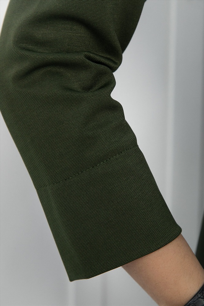 Повседневное платье в стиле спорт-шик, выполненное из сочетания плотного трикотажа и плащевки. Платье отрезное по линии талии, юбка состоит из ярусов. Такой фасон прекрасно подойдёт для повседневных мероприятий, будет хорошо сочетаться как с обувью на плоской подошве, так и с каблуком. Плащевка неприхотлива в уходе, любые брызги или капли с неё можно удалить обычной влажной салфеткой. Молния по всей длине платья также является декоративным элементом.