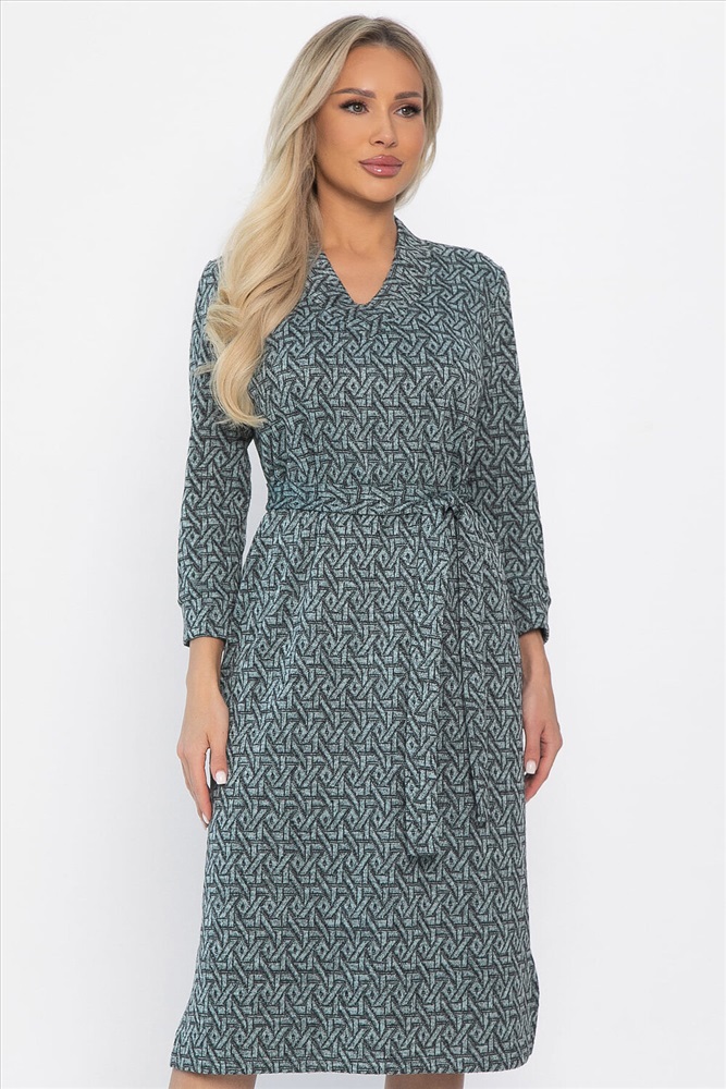 Трикотажное платье в мятном цвете с интересным принтом станет прекрасным дополнением в вашем гардеробе. Пояс из основной ткани, входящий в комплект, поможет подчеркнуть талию. Рукава длиной 3/4 оканчиваются манжетом. Создано для тех, кто ценит удобство, элегантность и индивидуальность стиля одновременно. Идеальное решение для повседневности, офиса или вечернего выхода.