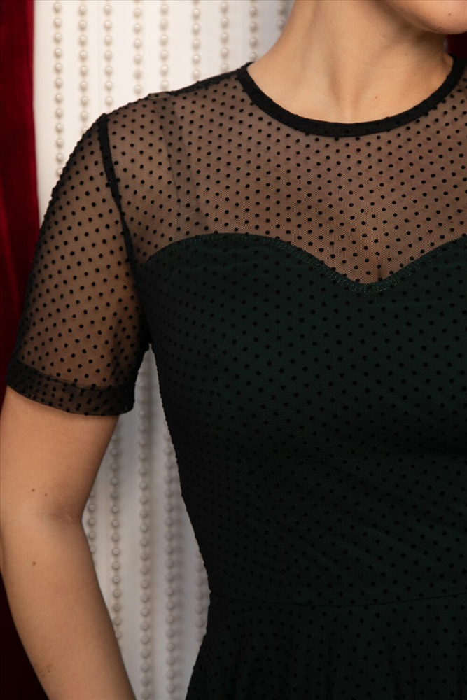 Настоящий must-have вечернего гардероба, которое станет вашим любимым выбором для любых торжественных мероприятий. Сетка создаёт эффект загадочности, а широкая юбка в форме «солнце» добавляет образу нежности и романтичности. Подчеркните свою индивидуальность и очарование с этим великолепным нарядом!