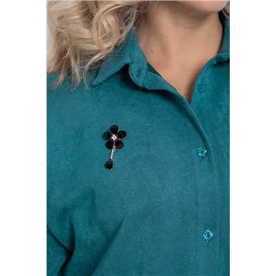Рубашка прямого кроя из микровельвета — это воплощение комфорта и уюта. Она станет отличным выбором для любого случая — будь то деловой день или вечерняя прогулка с семьёй. Вы можете носить её как самостоятельный элемент или сочетать с другими вещами из вашего гардероба. Завершающим штрихом этой рубашки станет брошь, которая входит в комплект.