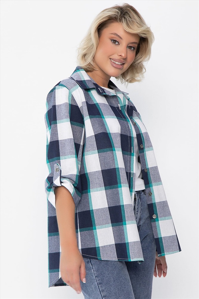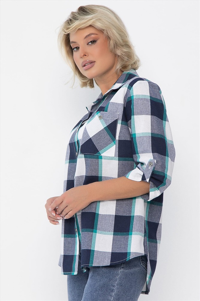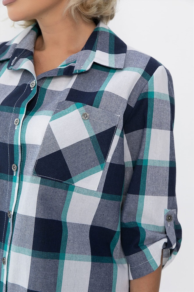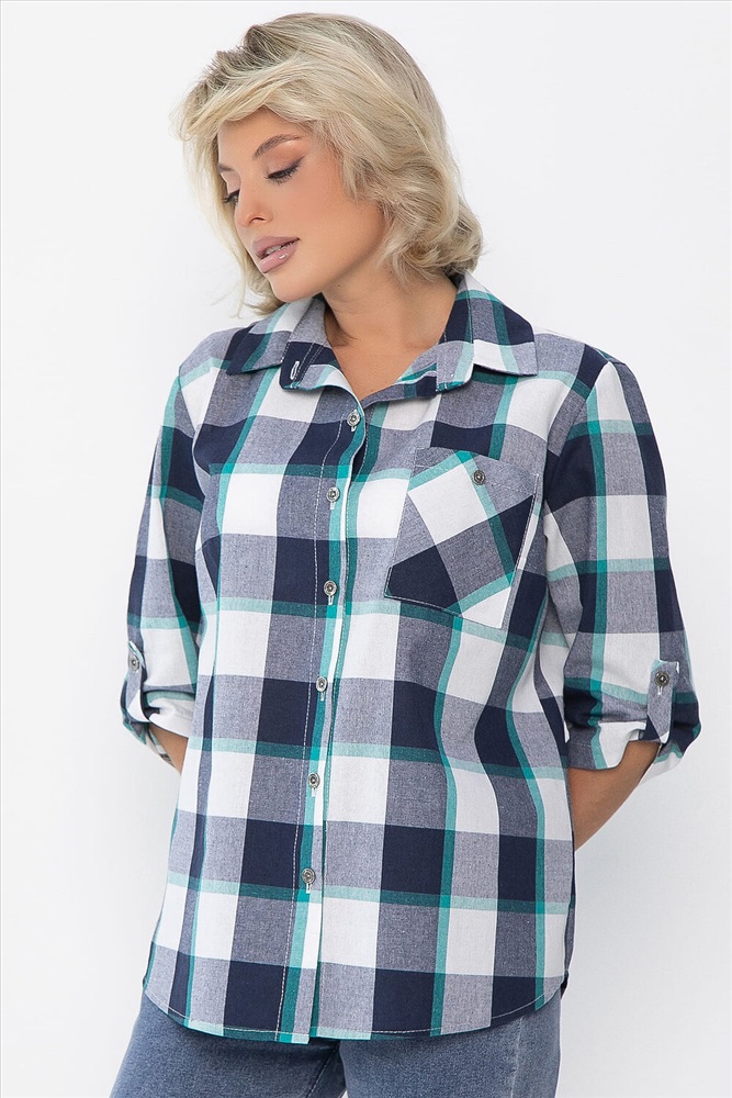 Рубашка полуприлегающего кроя в бело-синем цвете станет отличным дополнением вашего гардероба. Она выполнена из качественного материала, обеспечивающего комфорт в носке. Застёжка на пуговках по переду придаёт изделию классический вид, а воротник рубашечного типа добавляет элегантности. Рукава втачные, с патой на пуговке, что позволяет регулировать их длину и создаёт стильный акцент. На передней части рубашки расположен накладной карман слева, который не только практичен, но и добавляет изюминку в общий дизайн. Эта рубашка идеально подходит как для повседневной носки, так и для более формальных мероприятий. Сочетайте её с брюками или джинсами для создания стильного образа!