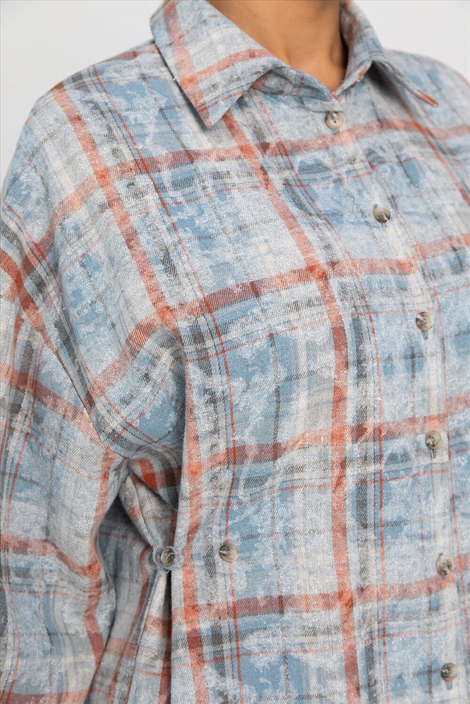 Создавайте яркие образы даже в пасмурные дни вместе с нашей уникальной рубашкой! Свободный крой и удобная посадка обеспечат вам максимальный комфорт на каждый день. Пуговицы в тон изделия — это изящное решение, которое гармонично вписывается в общий дизайн. Рукава длинные, завершаются аккуратными манжетами. Изюминкой данной рубашки являются дополнительные пуговицы спереди, которые расположены по боковым швам, с помощью них можно подчеркнуть линию талии. По спинке пуговицы нефункциональные. Рубашку можно носить отдельно, дополнив любимым аксессуаром, или же надевать поверх другого слоя, например, топа или футболки. Это позволит создавать разнообразные образы на каждый случай жизни.