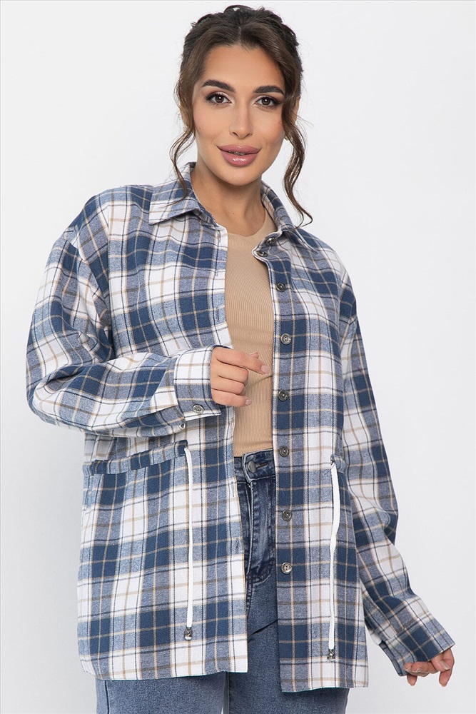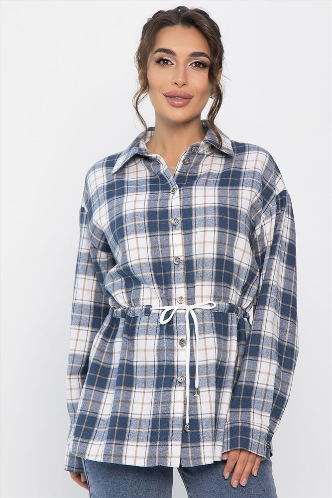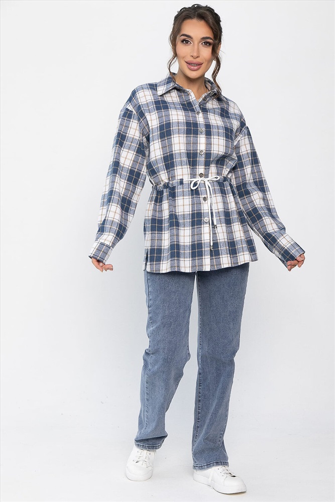 Рубашка в клетку в сине-белом цвете станет стильным акцентом в вашем гардеробе, позволяя экспериментировать с разными образами. Её можно носить как самостоятельный элемент или использовать в многослойных ансамблях. По бокам есть разрезы. Рубашка с воротником-стойкой и аккуратной застежкой на пуговицы выглядит современно и элегантно. Спущенное плечо добавляет расслабленности, а кулиска на талии подчеркивает фигуру. Создайте свой уникальный стиль с нашей новой клетчатой рубашкой!