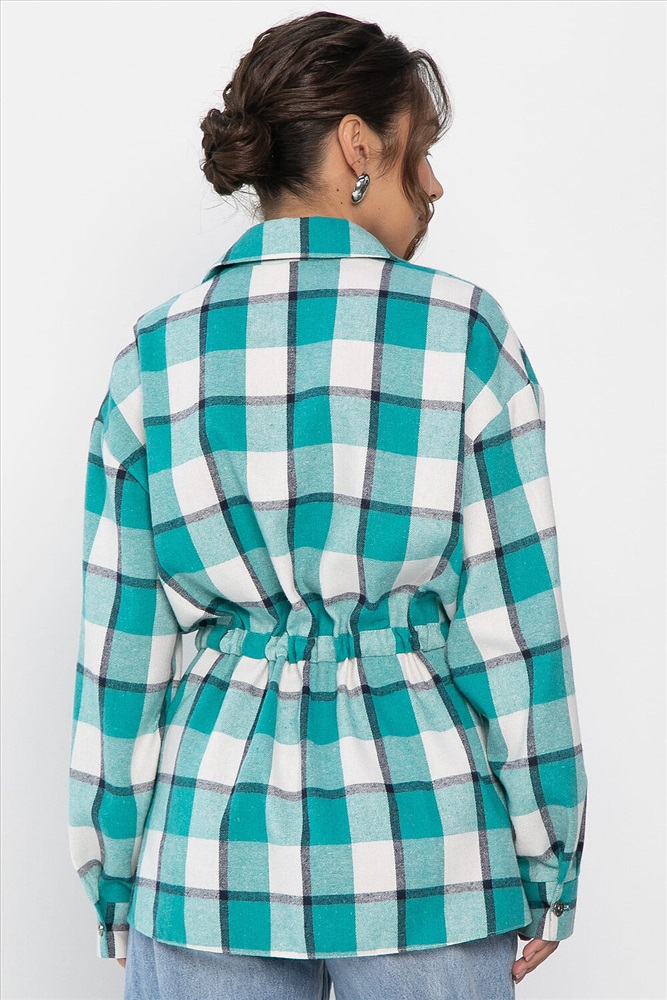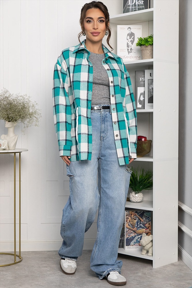 Рубашка в клетку в бело-зелёном цвете станет стильным акцентом в вашем гардеробе, позволяя экспериментировать с разными образами. Её можно носить как самостоятельный элемент или использовать в многослойных ансамблях. По бокам есть разрезы. Рубашка с воротником-стойкой и аккуратной застежкой на пуговицы выглядит современно и элегантно. Спущенное плечо добавляет расслабленности, а кулиска на талии подчеркивает фигуру. Создайте свой уникальный стиль с нашей новой клетчатой рубашкой!