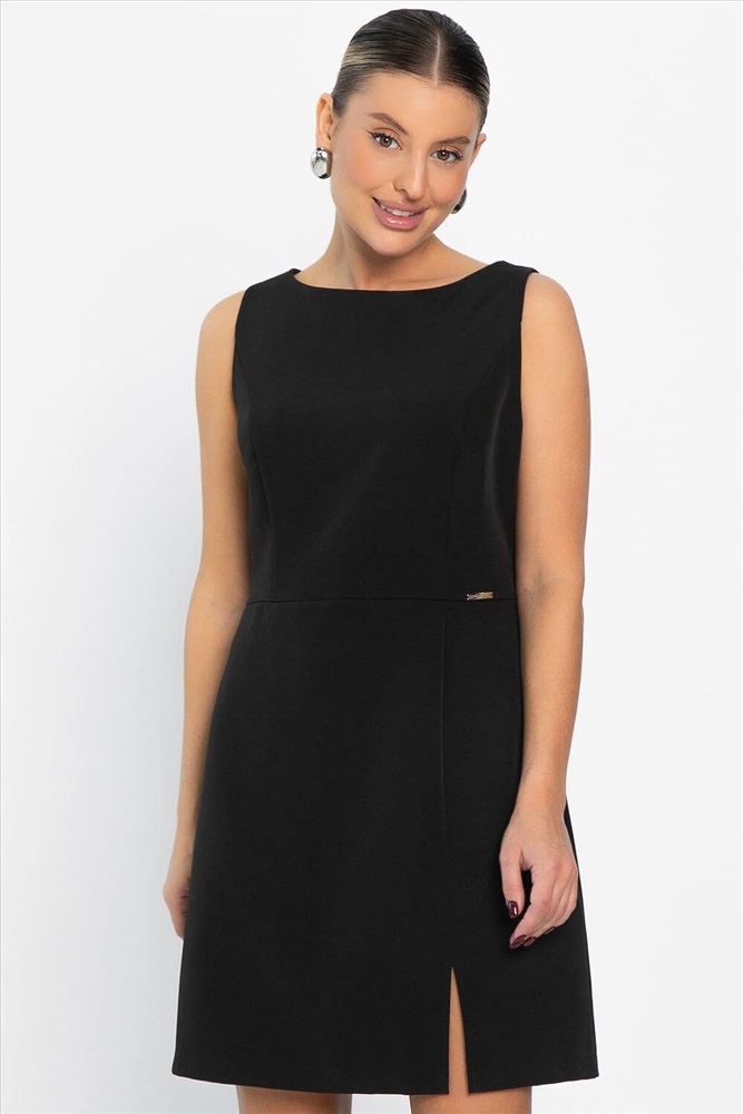 Сарафан — это универсальная модель, подходящая как для офиса, так и для учёбы или рабочих встреч. Его однотонный дизайн подчёркивает элегантность, а разрез спереди добавляет изящества. Металлическая вставка с логотипом LT Collection вносит стильный акцент, делая образ завершённым.