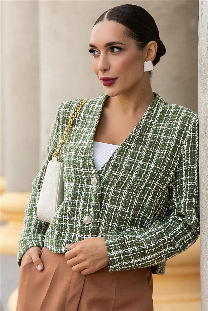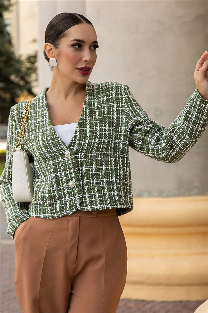 Женский укороченный твидовый жакет — это воплощение классики и стиля, перед которым невозможно устоять. Он идеально подходит как для деловых встреч, так и для повседневного образа. Легко сочетается с джинсами, юбкой-карандаш или брюками. Этот жакет подчеркнет вашу индивидуальность и добавит нотку изысканности. Он гармонично впишется в гардероб каждой женщины, которая хочет выглядеть стильно и уверенно.