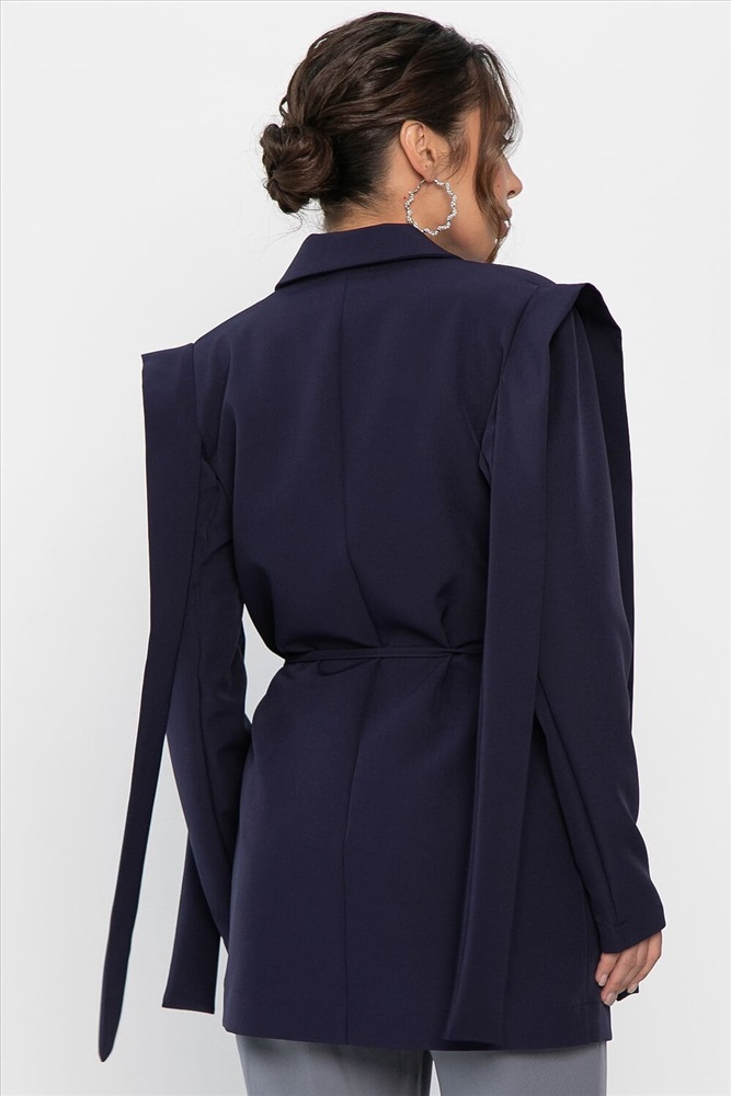 С этим эффектным и модным жакетом вы сможете создать неповторимый образ! Обратите внимание на оригинальные детали — декоративные завязки на плечах, которые придают вашему наряду особую изюминку. Также в модели предусмотрены подплечники. Этот жакет прекрасно дополнит любой образ и станет идеальным выбором для официальных мероприятий, свиданий, вечеринок или повседневной носки. Он позволит вам раскрыть свой стиль и экспериментировать с различными аксессуарами и элементами гардероба.