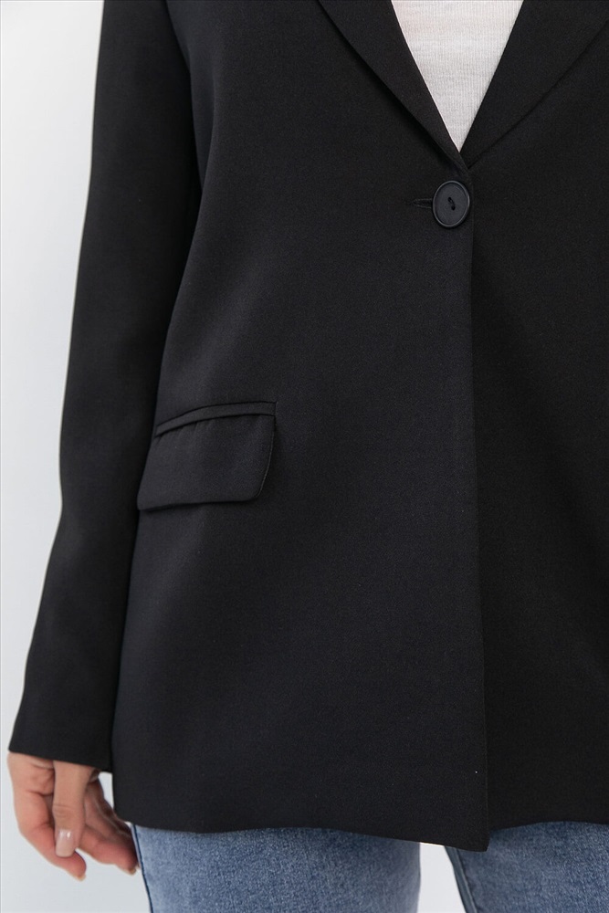 Ощутите элегантность и классику, выбрав этот стильный двубортный жакет. Его универсальный чёрный цвет позволяет создавать разнообразные образы, подходящие для деловых встреч, культурных мероприятий и повседневной жизни. Есть подплечники. Включите этот базовый элемент в свой гардероб и наслаждайтесь возможностью создавать различные образы!