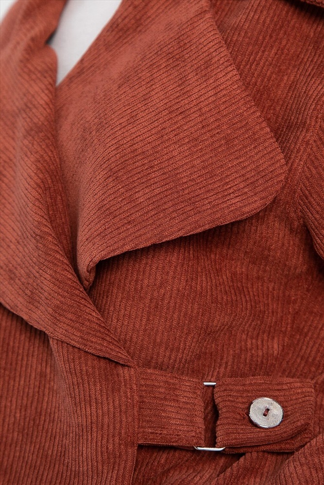 Укороченный вельветовый жакет – это утонченный и женственный элемент гардероба, способный дополнить любой образ. Он отлично подходит как для повседневных прогулок, так и для создания романтичного ансамбля. Рекомендуем сочетать его с брюками из той же ткани прямого кроя. Жакет имеет оригинальную застежку на хлястик. На правой полочке расположен асимметричный накладной карман с клапаном. Рукава со спущенной проймой, а низ рукава оформлен застегивающейся манжетой.