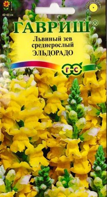 Декоративное растение из семейства Норичниковые, культивируемое как однолетник, высотой 40-60 см. Цветет с конца июня до поздних заморозков. Цветки крупные, собраны в кистевидные соцветия золотисто-желтой окраски. Холодостоек, светолюбив, к почвам нетребователен, в засушливый период нуждается в поливе. Выращивают рассадным способом. Посев проводят с начала марта до середины апреля. Всходы появляются через 8-12 дней. Рассаду высаживают во второй половине мая с расстоянием между растениями 20 см. Используется для посадки на клумбах, в рабатках и миксбордерах, а также для получения срезки (львиный зев стоит в воде до двух недель).