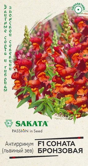 Интересные цветы добавляют уюта, прелести и моментально оживляют даже самый унылый и невзрачный участок в саду. Львиный зев — стильная культура, имеющая невероятно изысканный внешний вид, расцветку и форму. Гибрид F1 Соната бронзовая раскрасит сочными, красками любую, даже самую скучную территорию, создавая нереальную красоту с конца июня до поздних заморозков и распространяя вокруг восхитительный аромат. На пирамидальных, хорошо ветвящихся кустиках располагаются опушенные листья ланцетовидной формы и большое количество пышных соцветий. Антирринум холодостоек, светолюбив, к почвам нетребователен, в засушливый период нуждается в поливе. Выращивают рассадным способом. Для получения дружных всходов семена необходимо стратифицировать при температуре +10оС. Посев проводят с начала марта до середины апреля, поверхностно, не заделывая, в ящики с субстратом и ставят на свет. Всходы появляются через 8-12 дней. Рассаду высаживают во второй половине мая с расстоянием между растениями 20 см. Очаровательно будет смотреться не только в больших контейнерах, но и в маленьких горшочках.