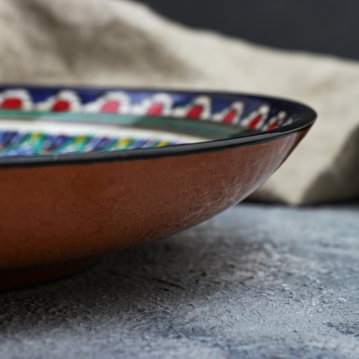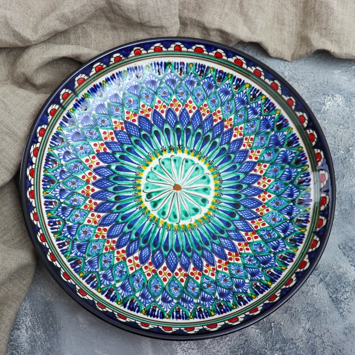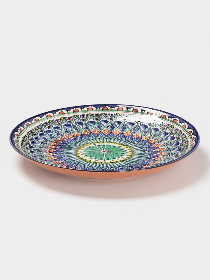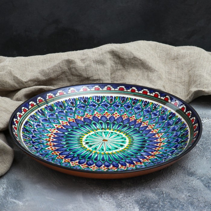 Керамическая глубокая тарелка диаметром 31 см — это посуда, в которой сочетаются функциональность и художественное мастерство. Поверхность украшена цветочно-растительным орнаментом, выполненным вручную. Каждый элемент узора передаёт связь с природой и ремёслом, делая изделие частью культурного наследия.