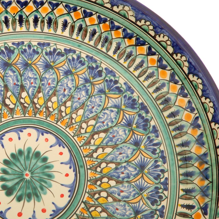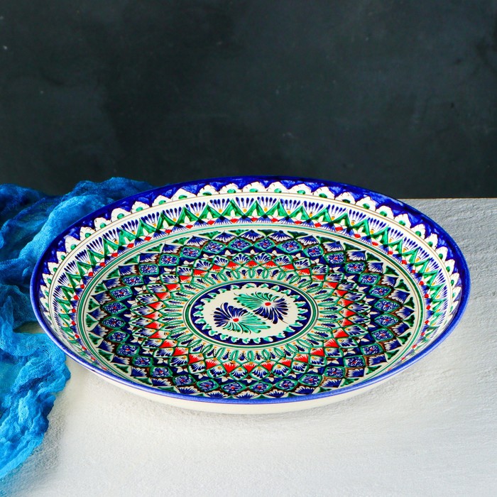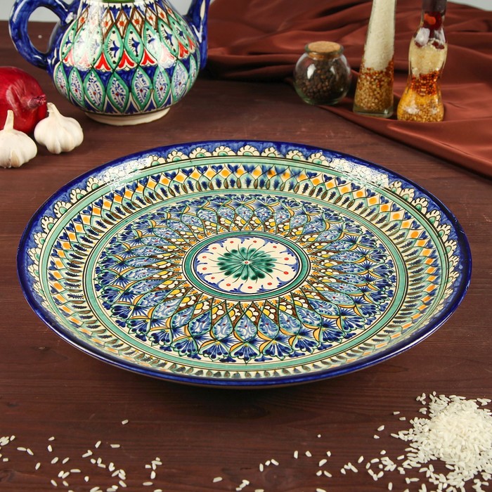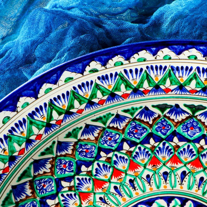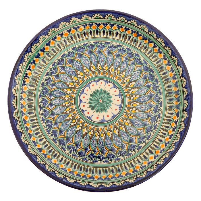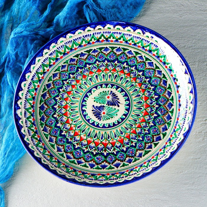 Уход и применение Тарелку не рекомендуется мыть в посудомоечной машине, чтобы сохранить яркость рисунка и целостность глазури. Подходит для повседневного и праздничного стола, особенно уместна в интерьере с натуральными текстурами и ретро-стилистикой. Благодаря глубокому профилю может использоваться как основное блюдо или как ёмкость для запекания. ДополнительноВсе товары производства Узбекистан ![]() Комментарии к товару